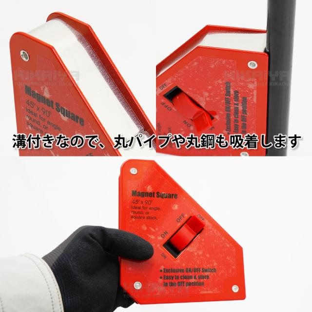 マグネットホルダー 六角ホルダー 大 2個セット レッド 溶接ホルダー ON/OFF スイッチ付 吸着力222N 溶接 マグネット 溶接補助 磁石 KIKAIYA