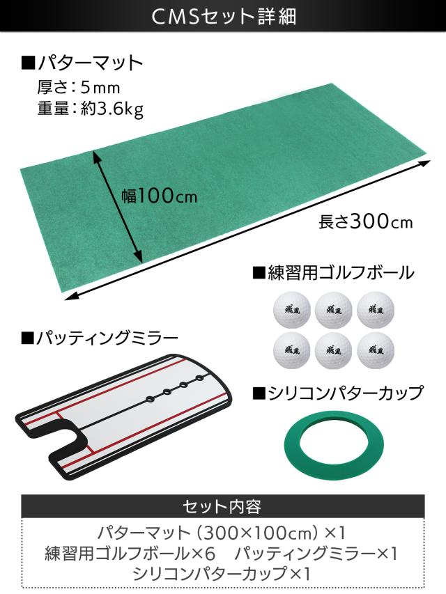 パターマット 3m ゴルフ 300×100cm Jシリーズ CMSセット パター 練習 マット 室内 静音 ゴルフマット ベント 芝 パッティング パター練習 パット練習 絨毯 カーペット ゴルフボール ミラー パターカップ