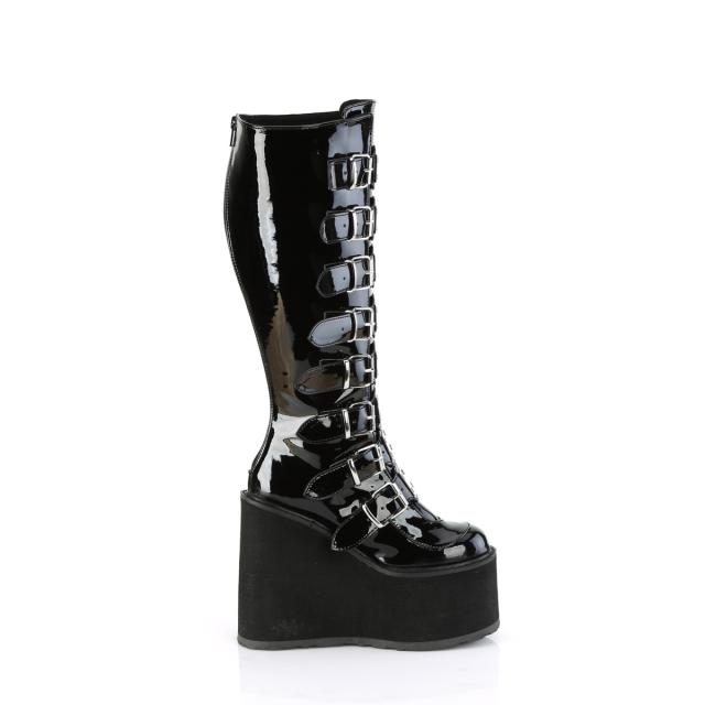 Demonia(デモニア) SWING-815WC ワイドカーフニーハイブーツ バックルストラップ バックZIP エナメル黒◆取り寄せ