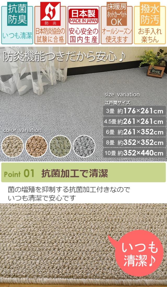 | 日本製 防炎 抗菌 はっ水 汚れにくい カーペット ニュープロテクト PR-3000 (TH) 江戸間3畳 約176×261cm |