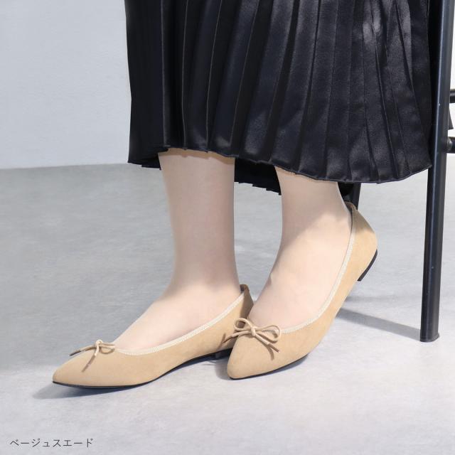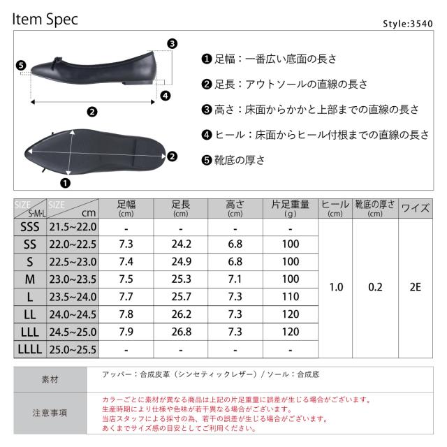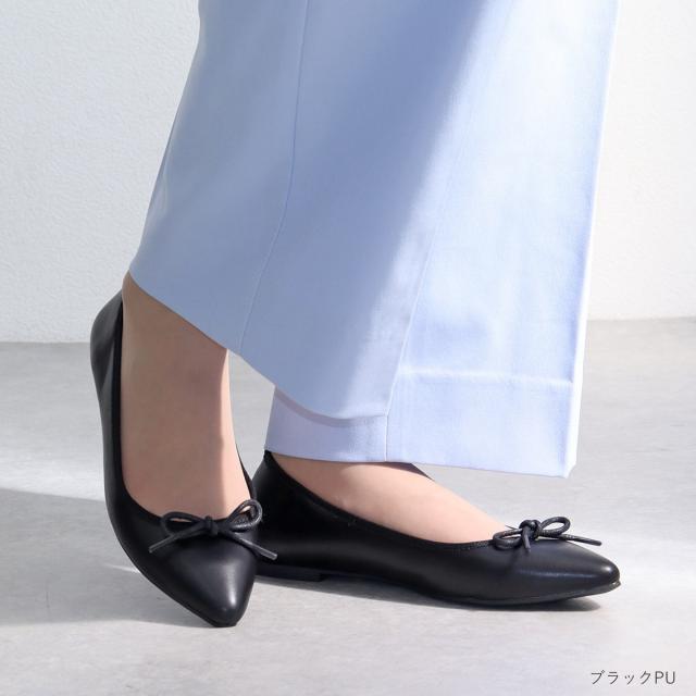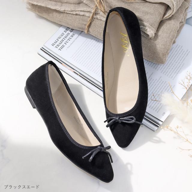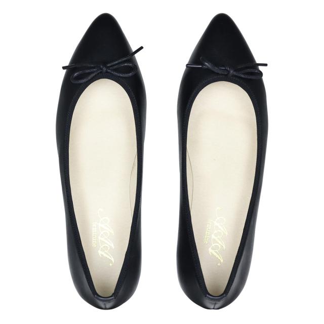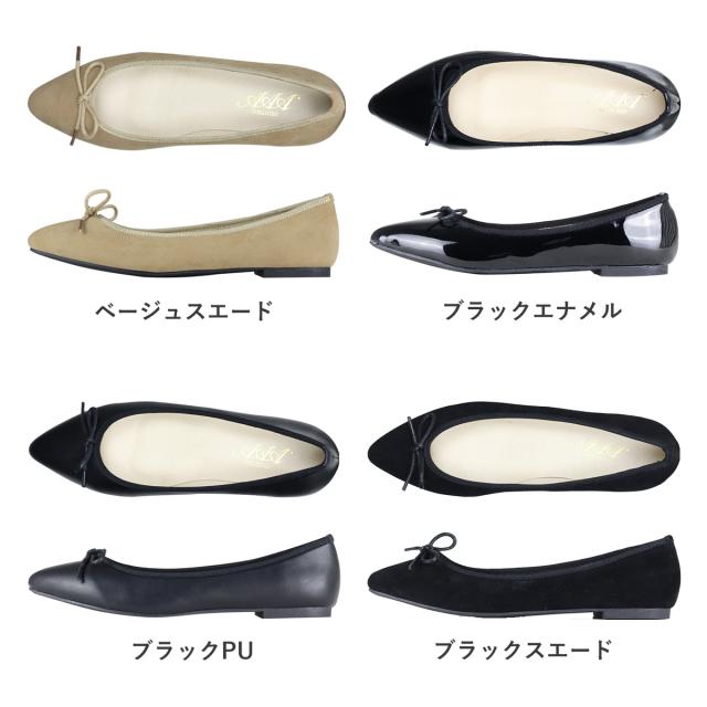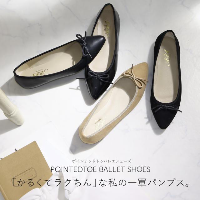 バレエシューズ ぺたんこ パンプス ローヒール 軽い ポインテッドトゥ 痛くない フラットシューズ 1cmヒール No.3540 22.0cm〜25.0cm 黒 ブラック AAA+ Feminine 354