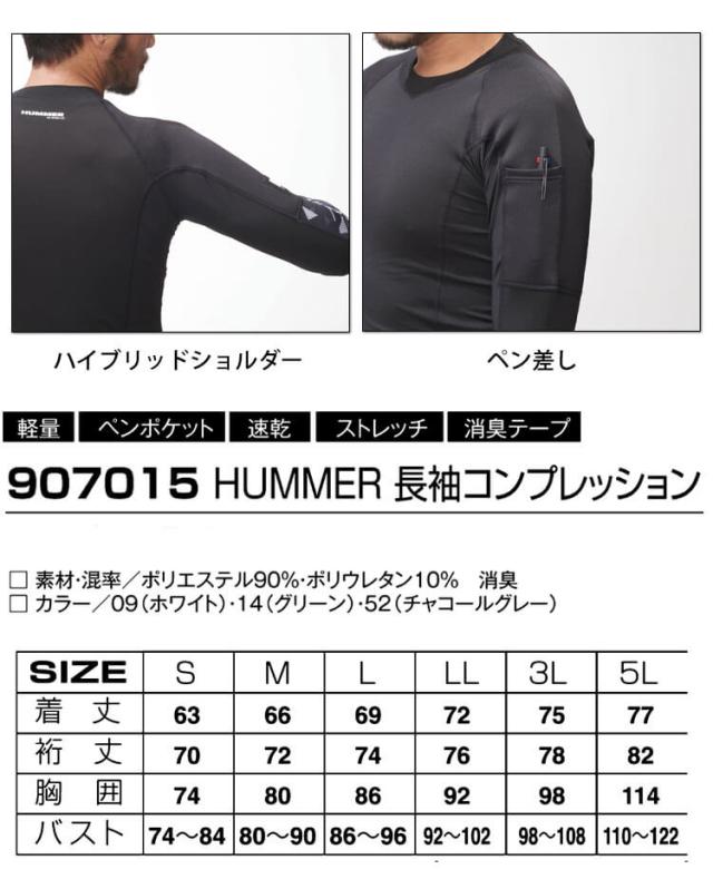 インナー HUMMER ハマー 長袖コンプレッション 907015 作業服 通年 5Lサイズ
