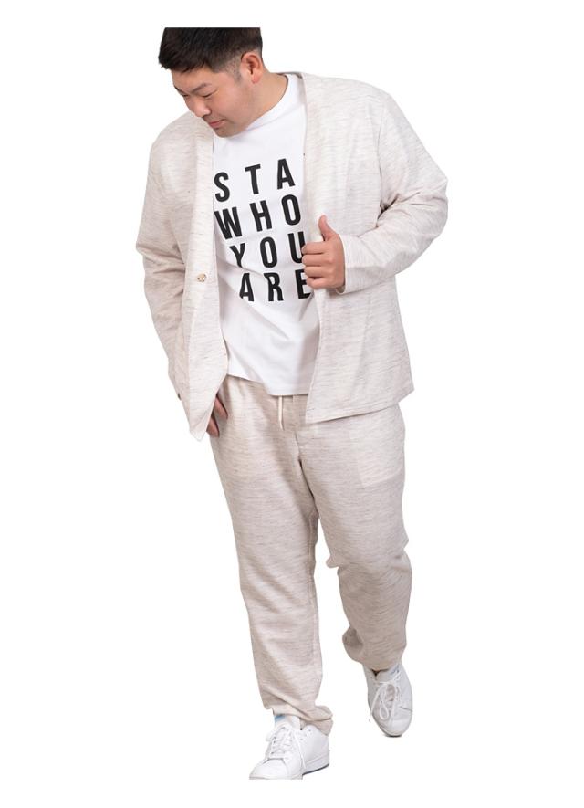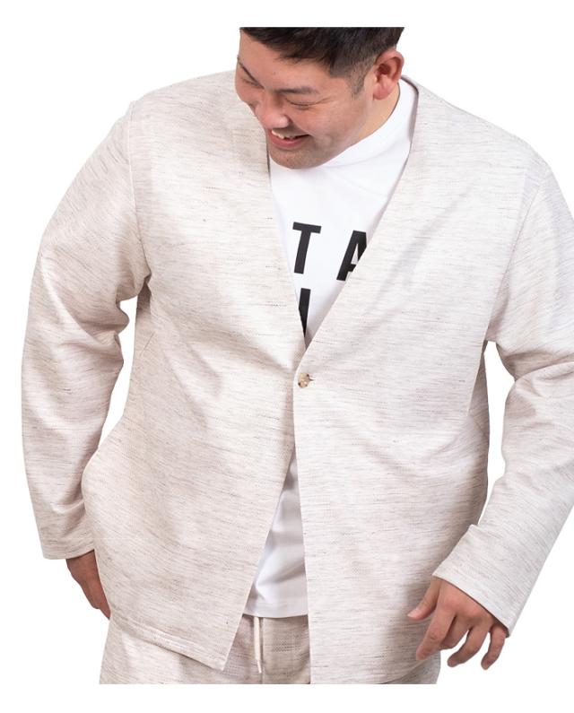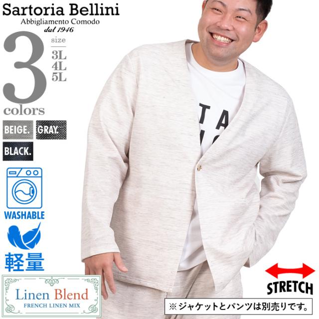 大きいサイズ メンズ SARTORIA BELLINI セットアップ ノルマンディー リネン ノーカラー ジャケット 麻混 ストレッチ 軽量 ウォッシャブル 522002b