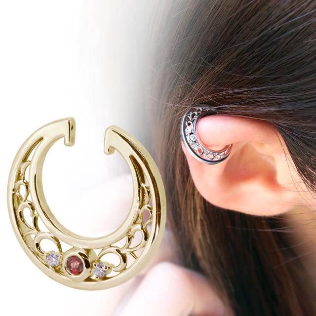 イヤーカフ 18金 18k イヤリング レディース 片耳用 イヤカフ 1月誕生石 ガーネット ノンホールピアス