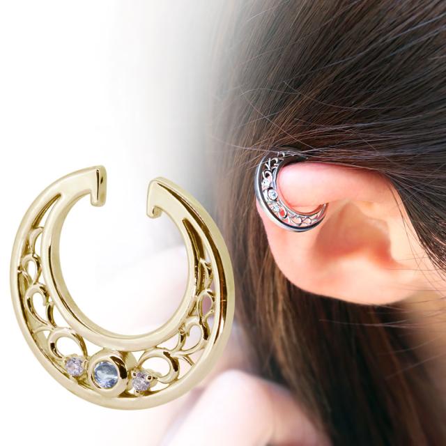 イヤーカフ 18金 18k イヤリング レディース 片耳用 イヤカフ 3月誕生石 アクアマリンサンタマリア ノンホールピアス