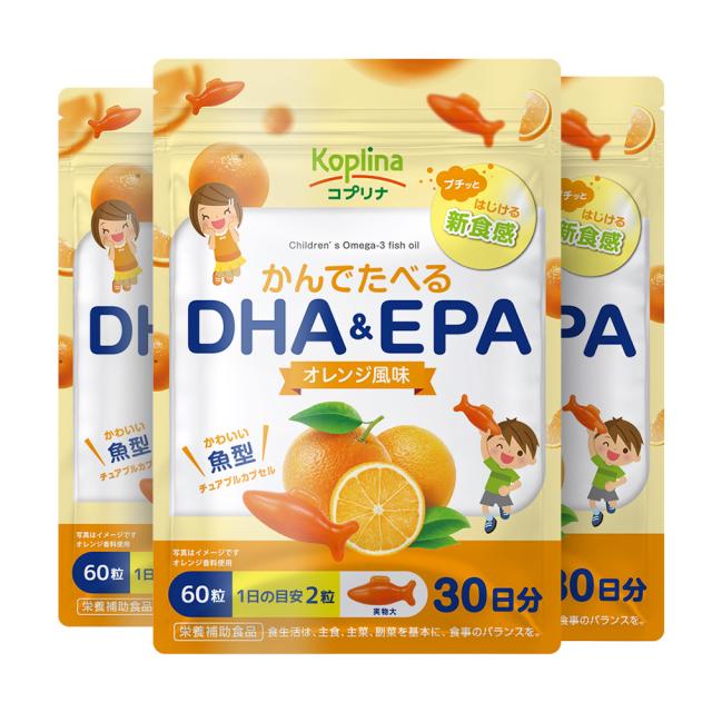 かんでたべるDHA&EPA 60粒 3袋セット 90日分【プチっとはじける新食感/魚型チュアブルカプセル/子育て支援/安心国内製造/コプリナ】