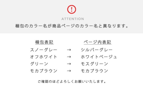 シルバーグレー、ホワイトベージュ、モスグリーン、モカブラウン