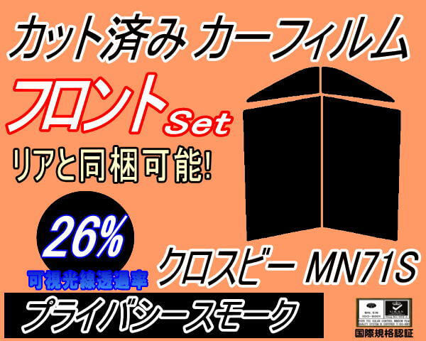 フロント (s) クロスビー MN71S (26%) カット済みカーフィルム 運転席 助手席 三角窓 左右セット スモークフィルム フロントドア 車種別 スモーク 車種専用 成形 フイルム 日よけ 窓 ガラス ウインドウ 紫外線 UVカット MN71S スズキ