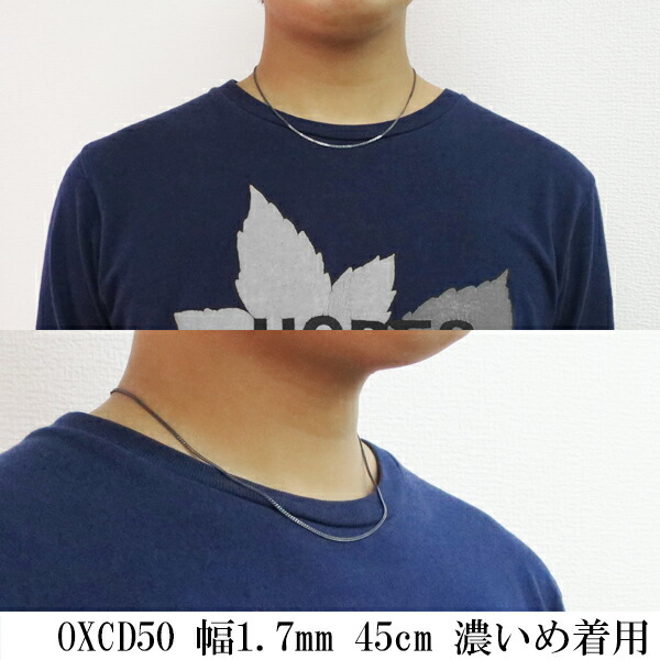 こちらはシルバー925のチェーンを硫化させることで、従来の銀色とは趣の異なるシックでハードな表情に仕上げた、独特の渋い風合いが魅力のチェーンです。