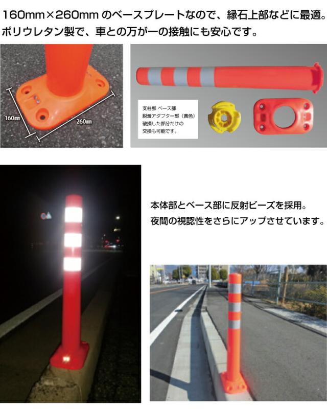 ▼ 縁石用 ソフトコーンM ベースタイプ 高さ760mm 段差 注意喚起 道路 駐車場 ポール 反射ポール ガードコーン sa-sc-m760b