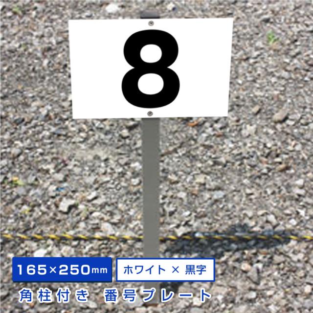 ◎駐車場アルミ角柱付番号プレート 支柱付駐車場番号 H165×W250ミリ 杭 杭付き 角柱 砂利 土 更地 駐車場番号看板 埋め込み scn-101