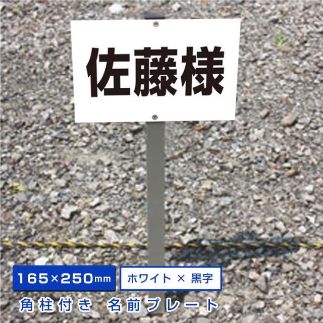 ◎駐車場 アルミ角柱付 名前・社名プレート 支柱付プレート H165×W250ミリ 杭 杭付き 角柱 砂利 土 ネームプレート 埋め込み scn-101name