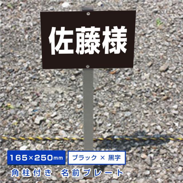 駐車場 アルミ角柱付 名前プレート ブラック H165×W250ミリ 杭 杭付き 角柱 砂利 土 更地 埋め込み ネームプレート 社名プレート scn-101name-bla