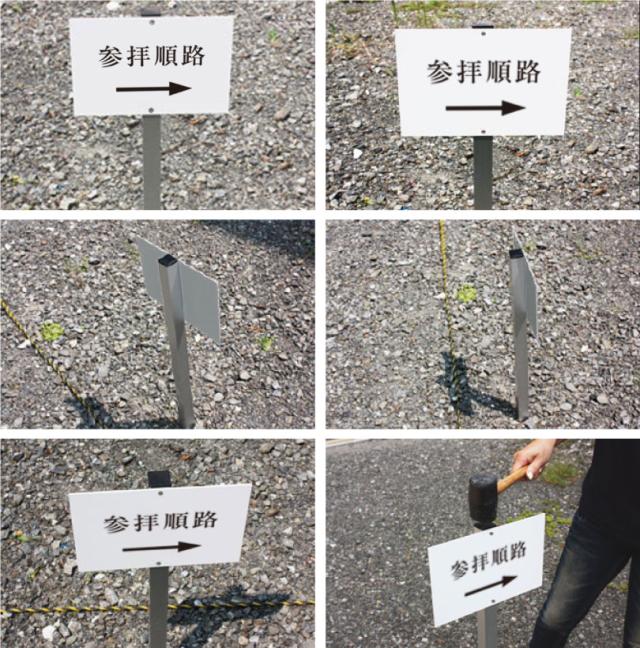 参拝順路 埋め込み 看板 支柱付きプレート H165×W250mm アルミ角柱付き 杭 杭付き 角柱 砂利 土 お寺 寺院 埋め込み scn-shrine02