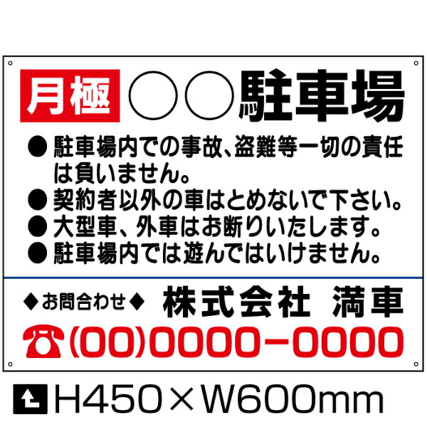 月極 駐車場 看板 通常サイズ H45×W60cm 月極 駐車場 看板 契約車募集看板 月極駐車場 プレート bosyu-04-d4