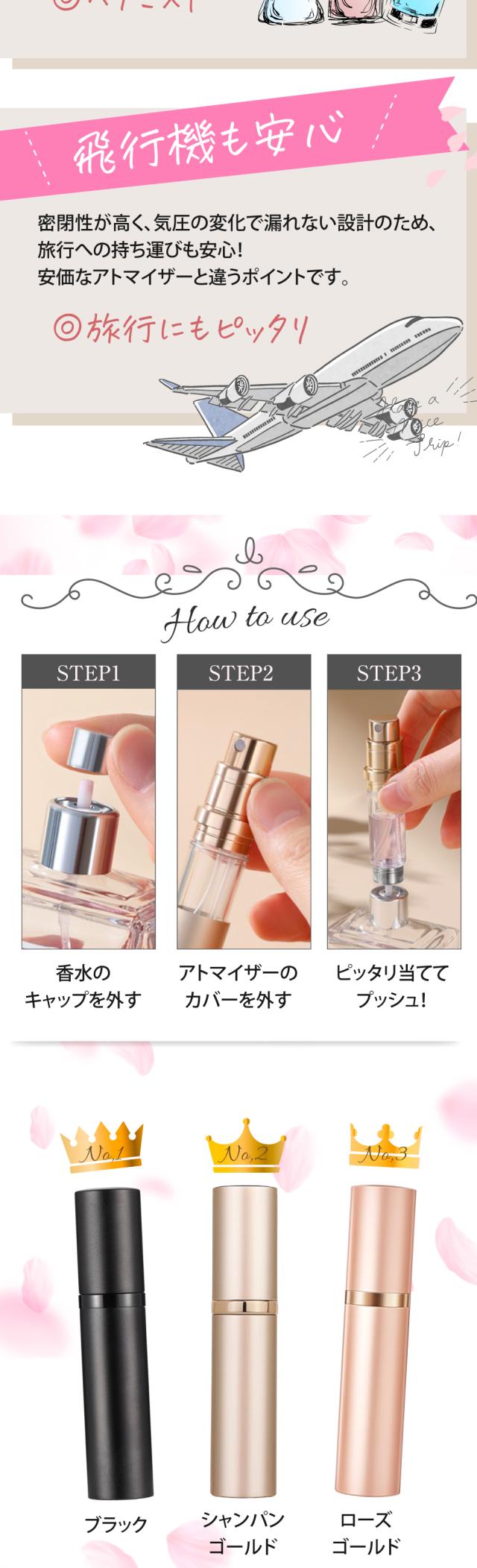アトマイザー おしゃれ かわいい 香水 携帯 持ち運び クイックアトマイザー ワンプッシュ 詰め替え レディース コンパクト スプレー ノズル 5ml 香水瓶 ボトル ボトル式 スポイト不要 ミニ 小さい コンパクト 漏れにくい 小型