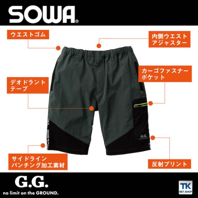 ハーフパンツ 作業服 ワークウェア ユニフォーム ストレッチ 接触冷感 消臭 快適 SOWA 桑和 春夏 ズボン sw-0388-07