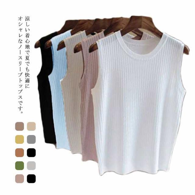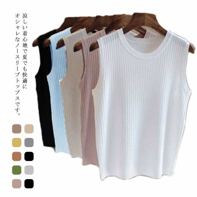 タンクトップ レディース 袖無し トップス リブニット インナー 冷感素材 シンプル シンプル ノースリーブ 通気性 薄手 すっきり 着痩せ カジュアル おしゃれ 大きいサイズ 夏物 送料無料
