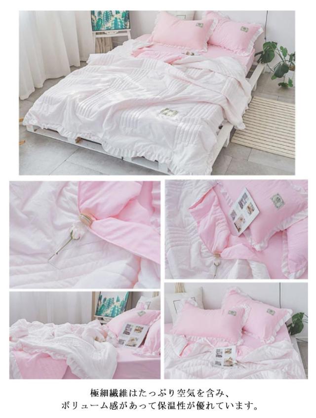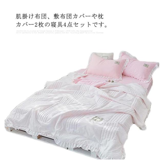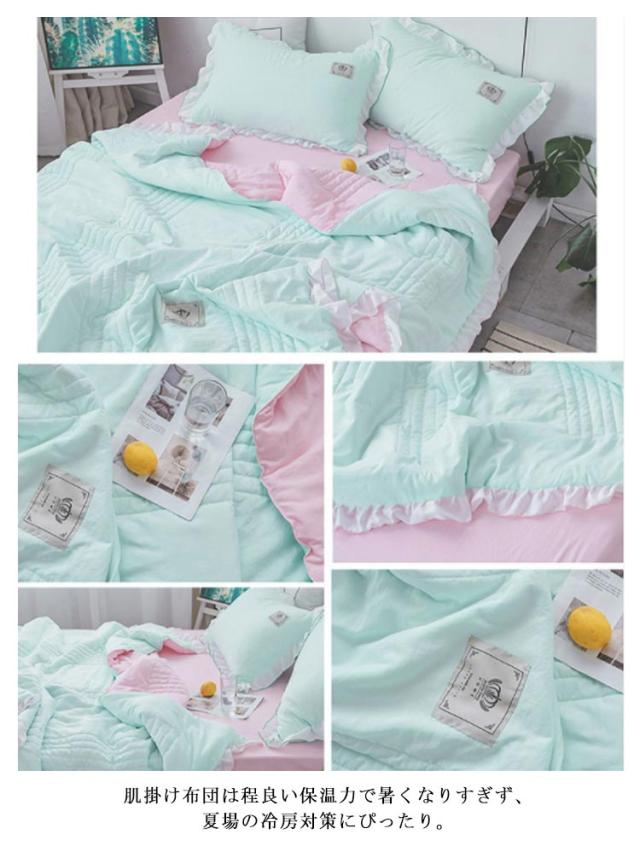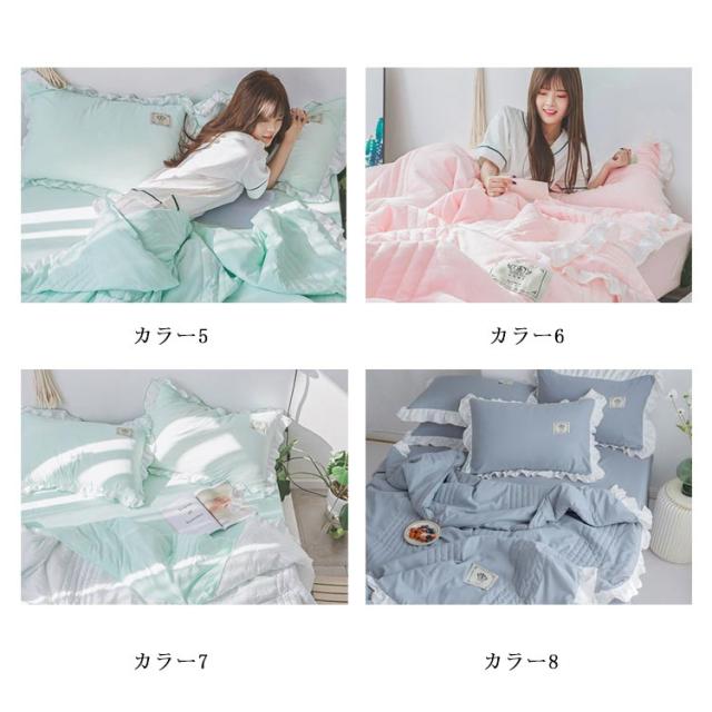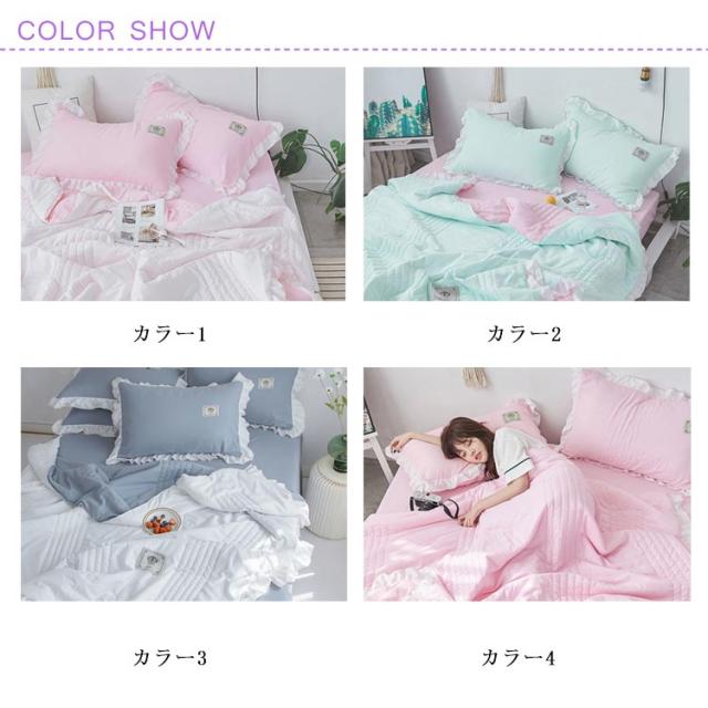 肌掛け布団 夏布団 綿 4点セット シーツ 枕カバー2枚 シングル セミダブル 敷布団カバー 夏掛け布団 タオルケット キルトケット 丸洗い 抗菌 防ダニ 北欧 無地 おしゃれ かわいい 女性用 掛ふとん 洗える