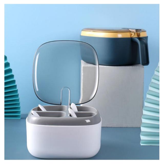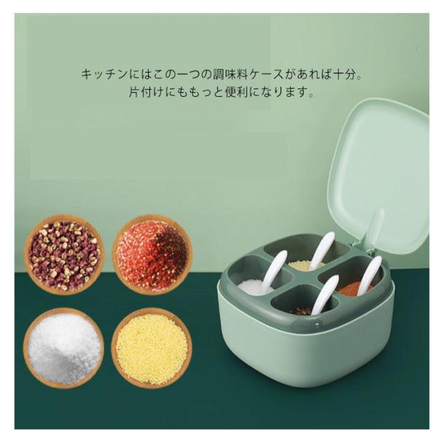 | シンプルで上質感あふれる、スタイリッシュなデザインです。 片手で四種類の調味料を取ってオープン可能でフタを開けたまま置くこともできるから、調理中の計量もしやすくてとっても便利。 乱雑になりがちな調味料をすっきりまとめてくれる。 キッチンにはこの一つの調味料ケースがあれば十分。片付けにももっと便利になります。 | |