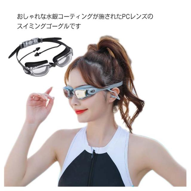 スイムゴーグル ミラーゴーグル スイミングゴーグル 耳栓付き 大人用 くもり止め UVカット 電気メッキ 競泳用 水中メガネ 水中眼鏡 水漏れ防止 メンズ レディース フィットネス おしゃれ 水泳 海 送料無料