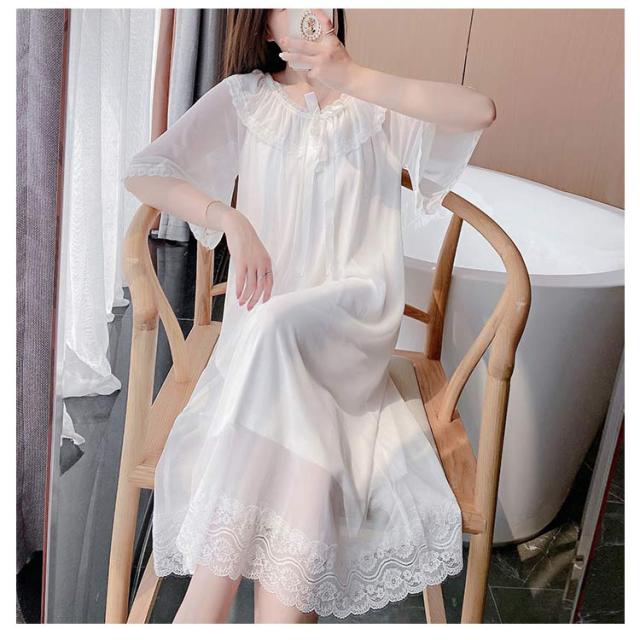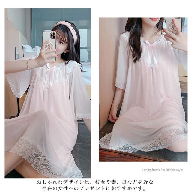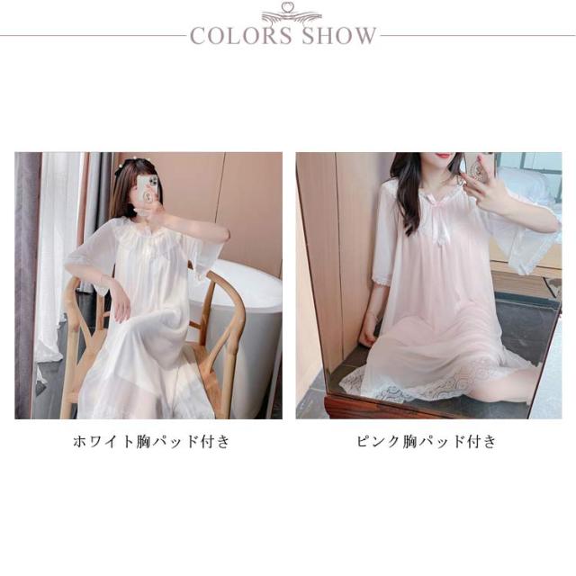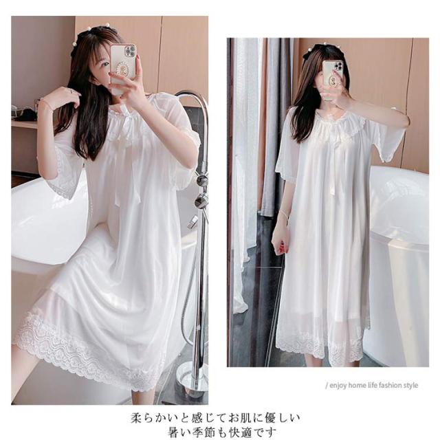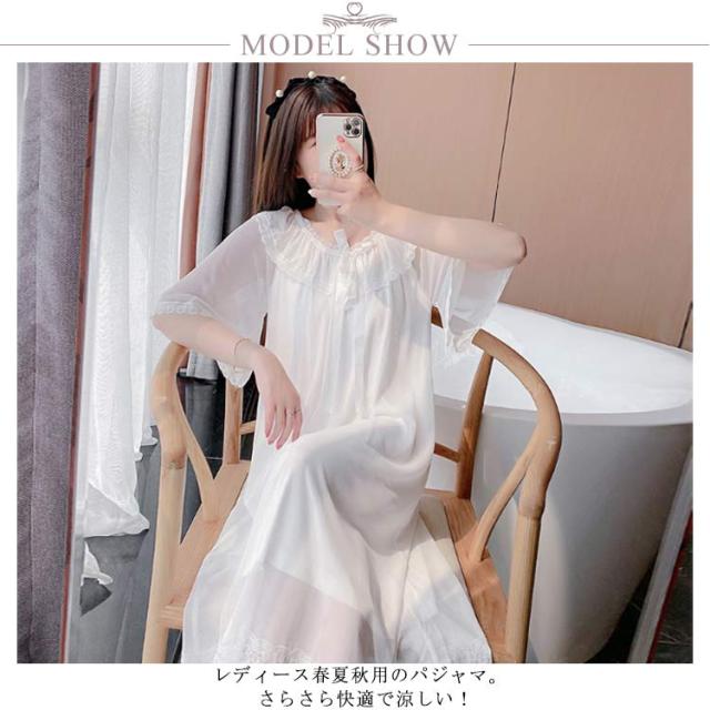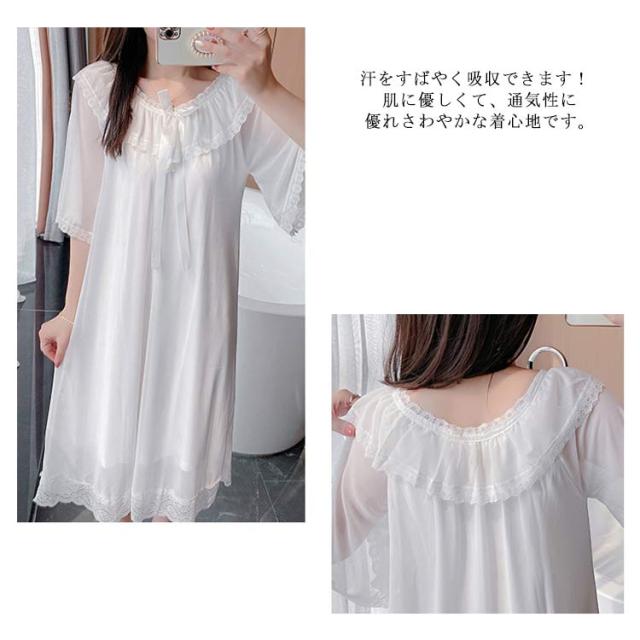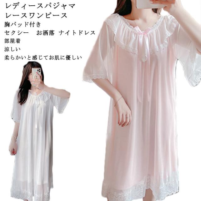 レディースパジャマ ルームウェア ナイトドレス ワンピースパジャマ 涼しい ドレスパジャマ 胸パッド付き 部屋着 ゆったり レース 可愛い ロング丈 ホワイトドレス ワンピース 春夏秋冬