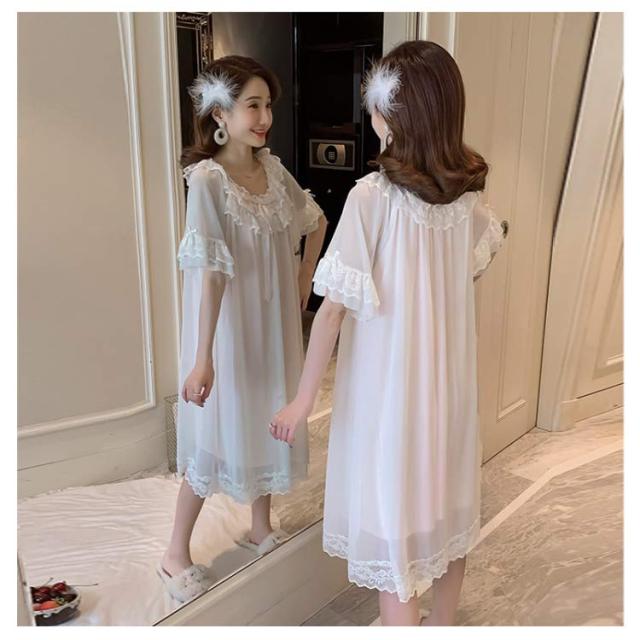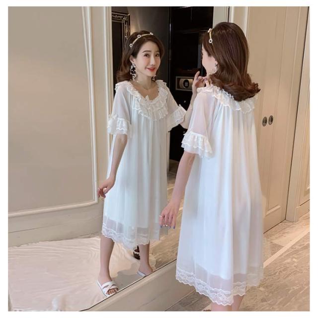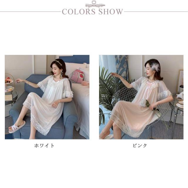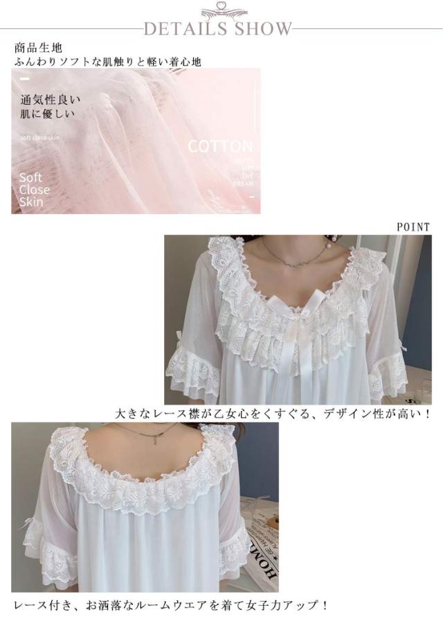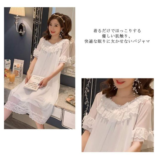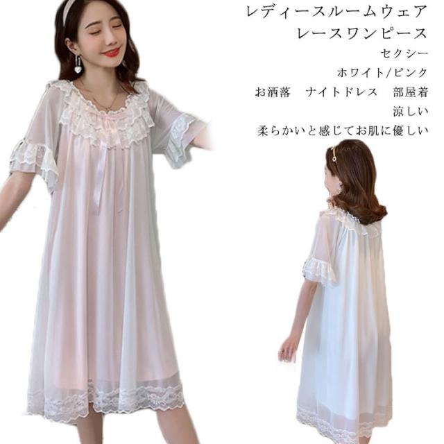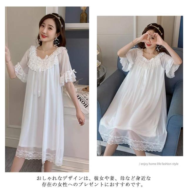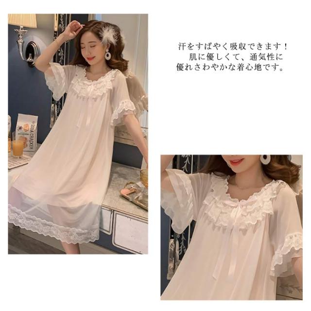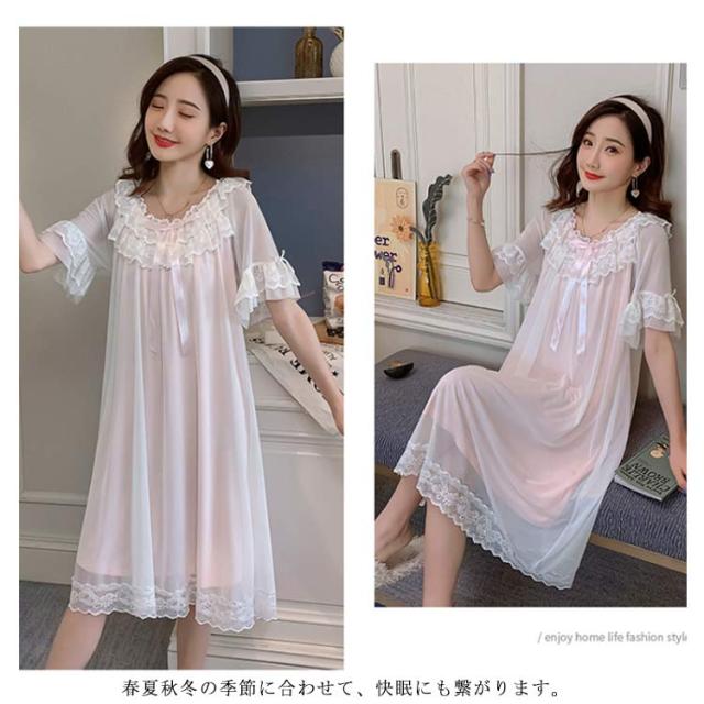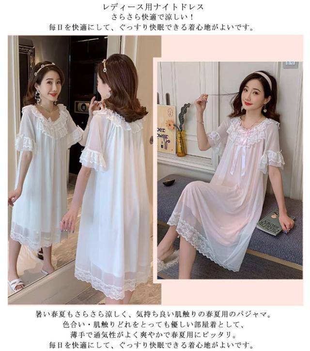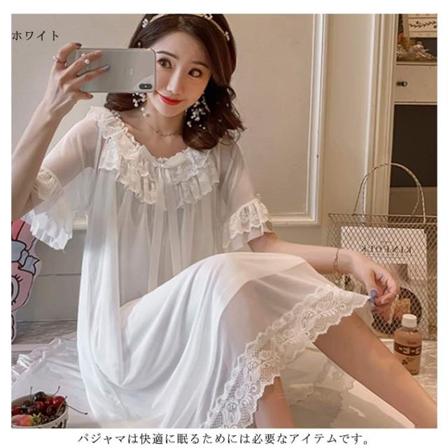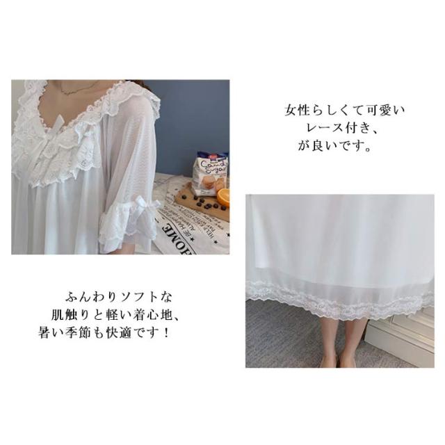レディースパジャマ ルームウェア ナイトドレス ワンピースパジャマ 涼しい ドレスパジャマ 部屋着 ゆったり レース 可愛い ホワイトドレス ロング丈 ワンピース 春夏秋冬