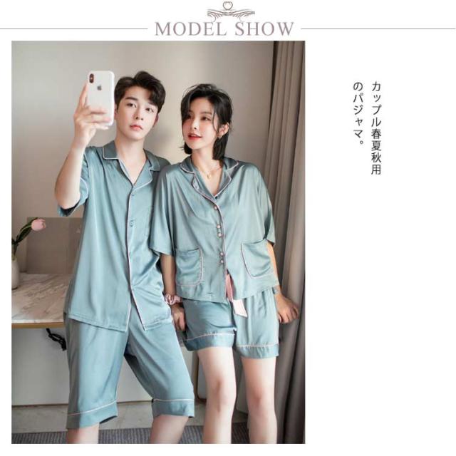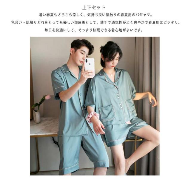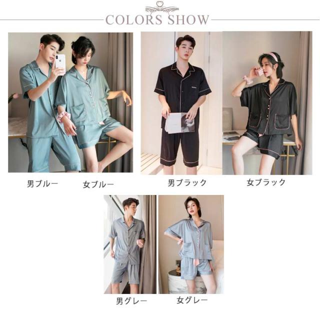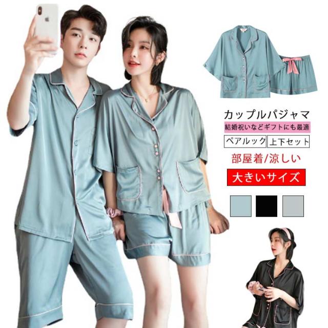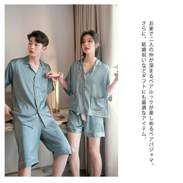 カップルパジャマ レディース メンズ ルームウェア 上下セット 2点セット ナイトウェア 涼しい セットアップ 部屋着 ゆったり 可愛い 半袖 シャツ パンツ 春夏秋冬