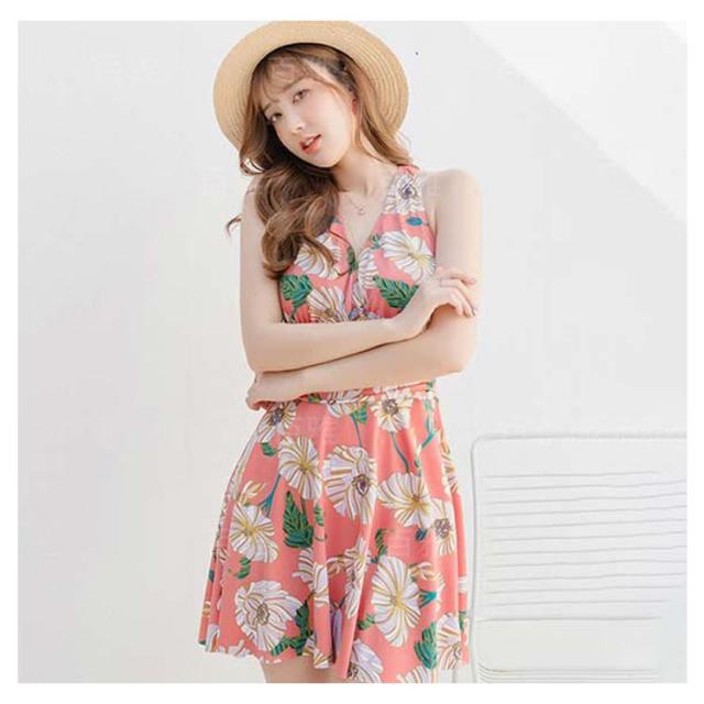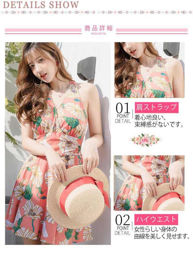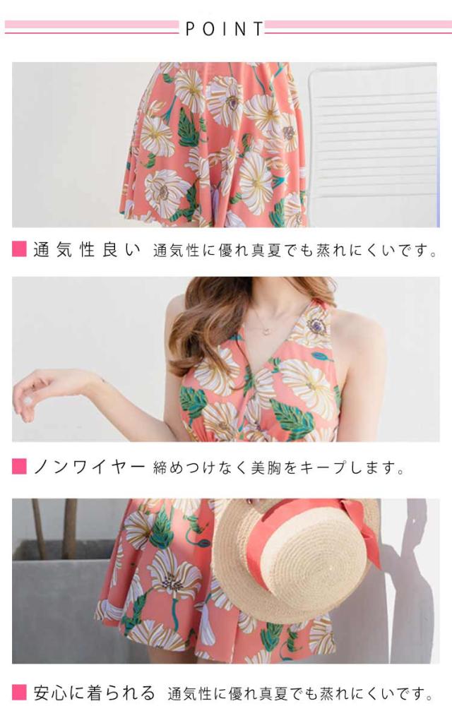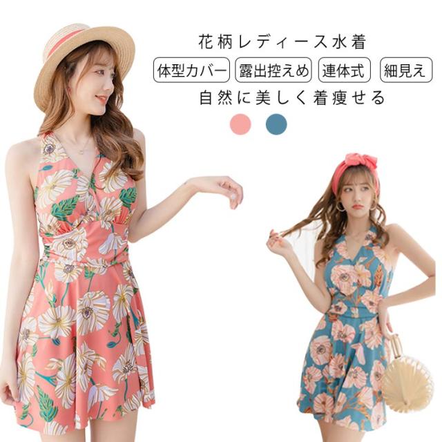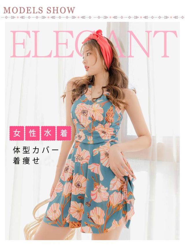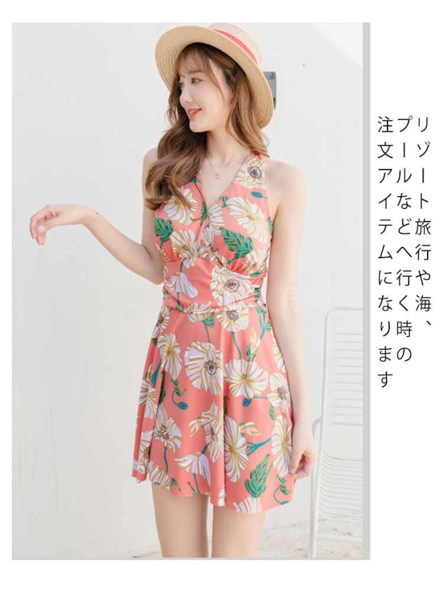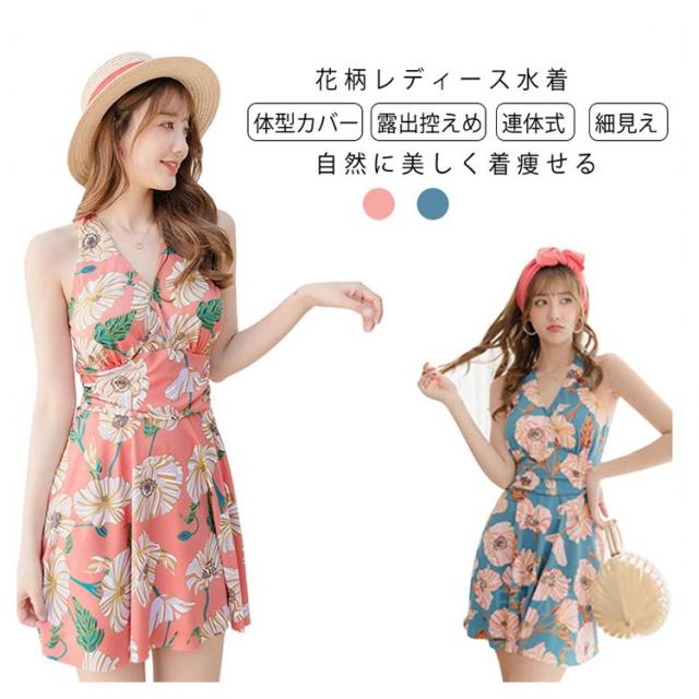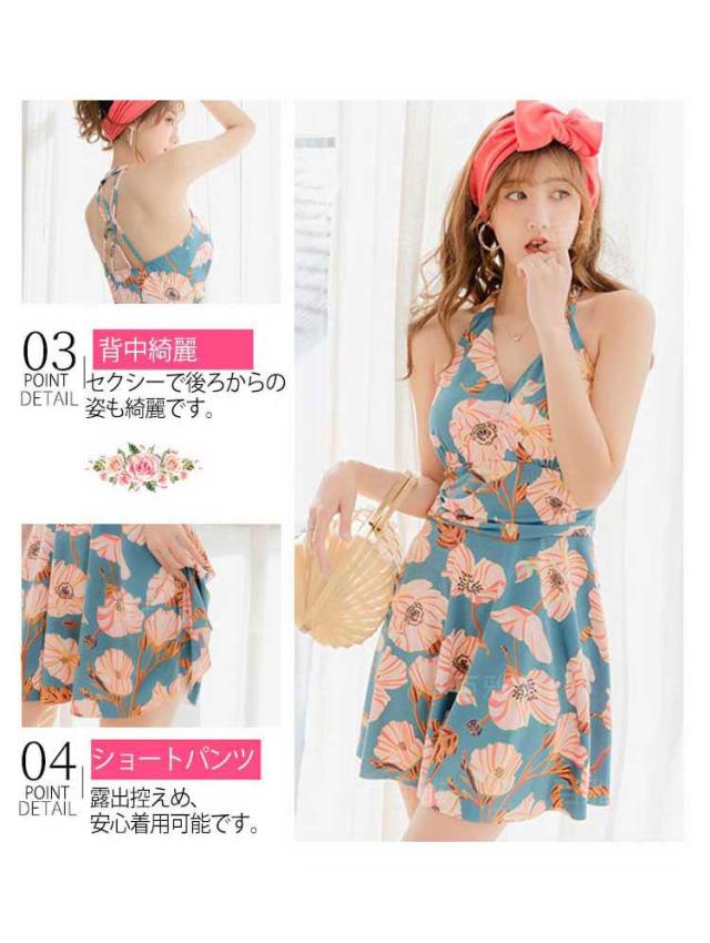 レディース水着 花柄 ワンピース 体型カバー 連体式 ワンピ水着 女性みずぎ パット付き ノンワイヤー オールインワン 大人 ショートパンツ付き