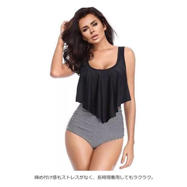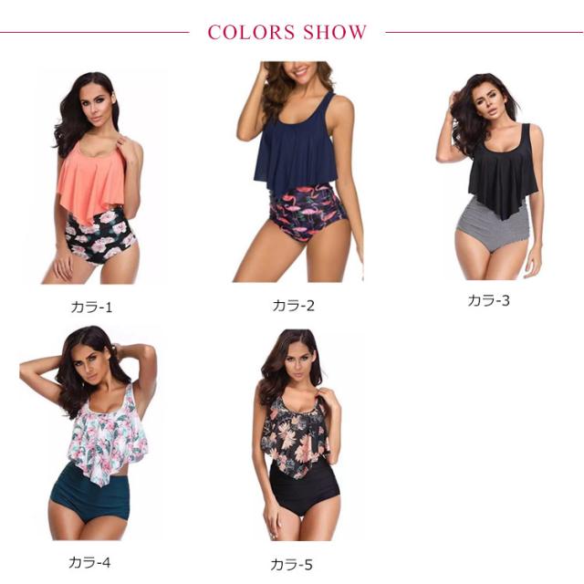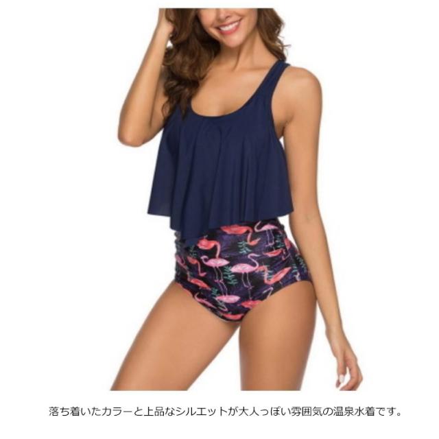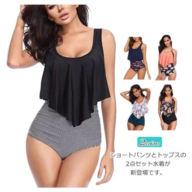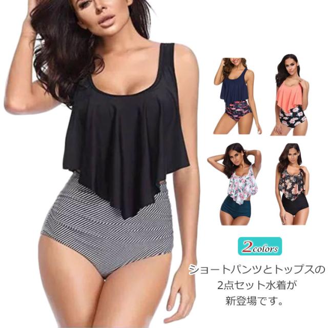 水着 レディース セットアップ 体型カバー ビーチウェア ビキニ パット付き ハイウエスト フレア タンキニ セパレート スイムウェア 海水浴 水泳 着痩せ 送料無料