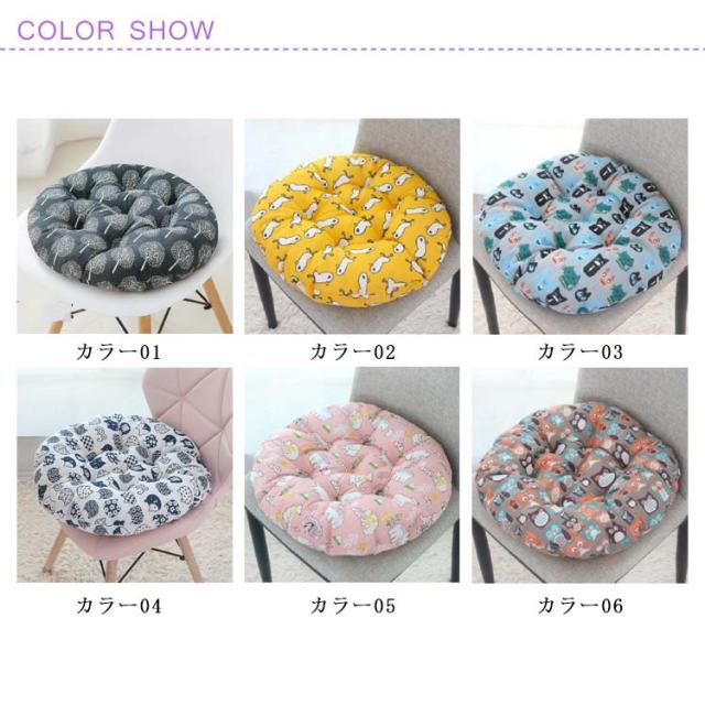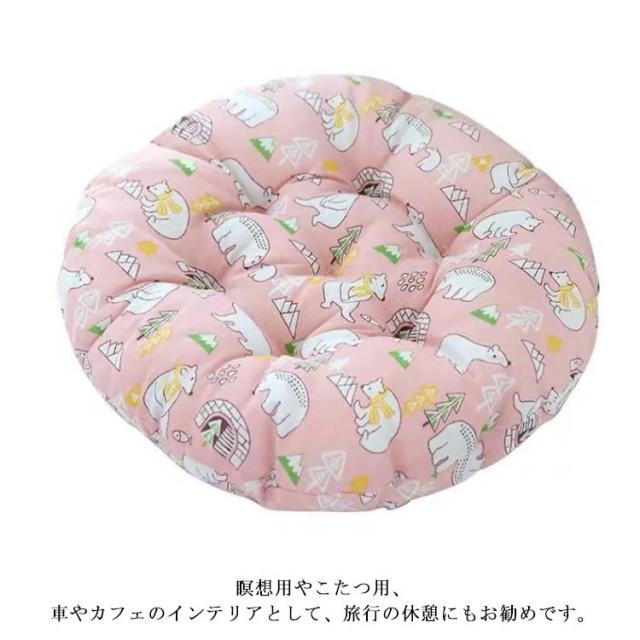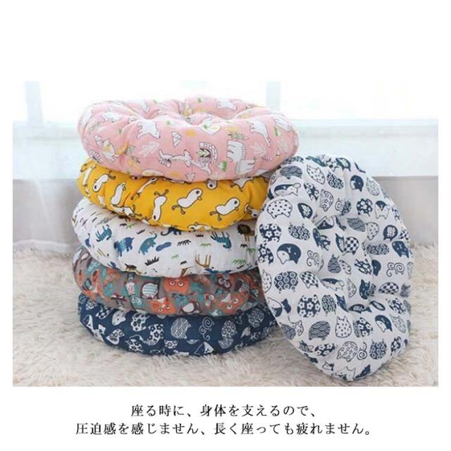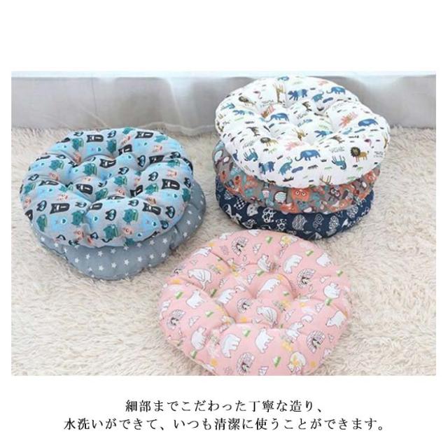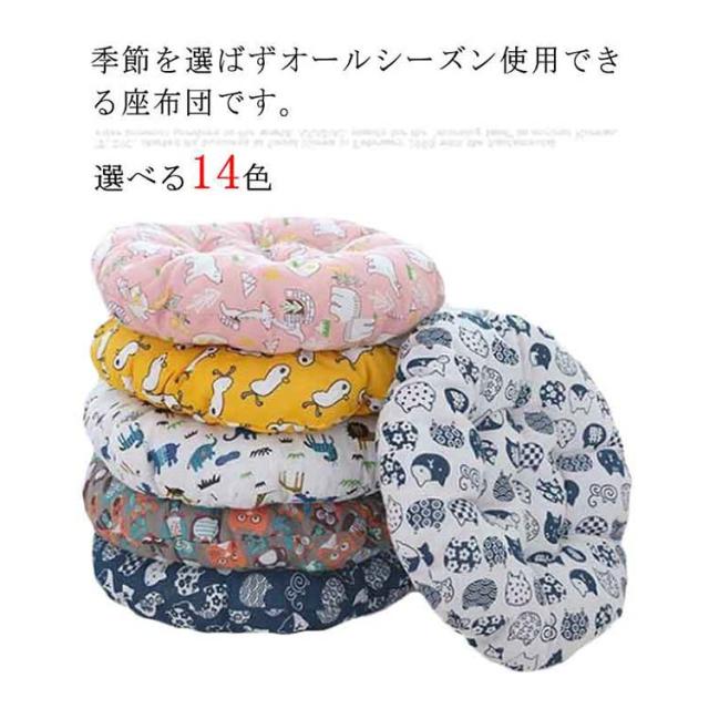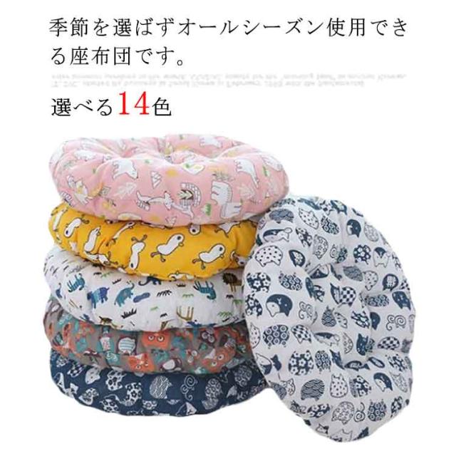 座布団 ざぶとん クッション チェアクッション 丸型 厚さ5cm 綿麻カバー インテリア お洒落 ふわふわ 座り心地いい 和柄 動物柄 丸洗い可能 椅子用 床用 オールシーズン
