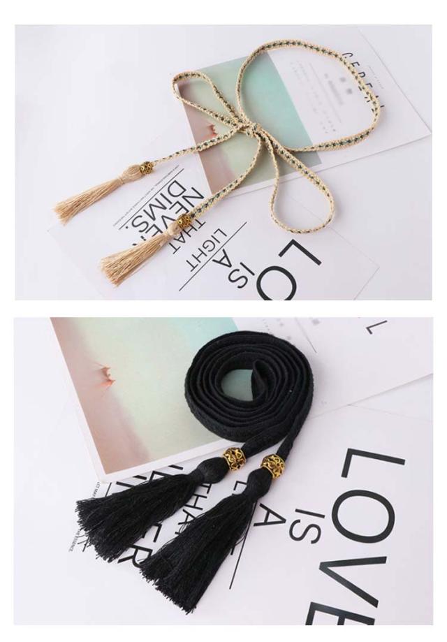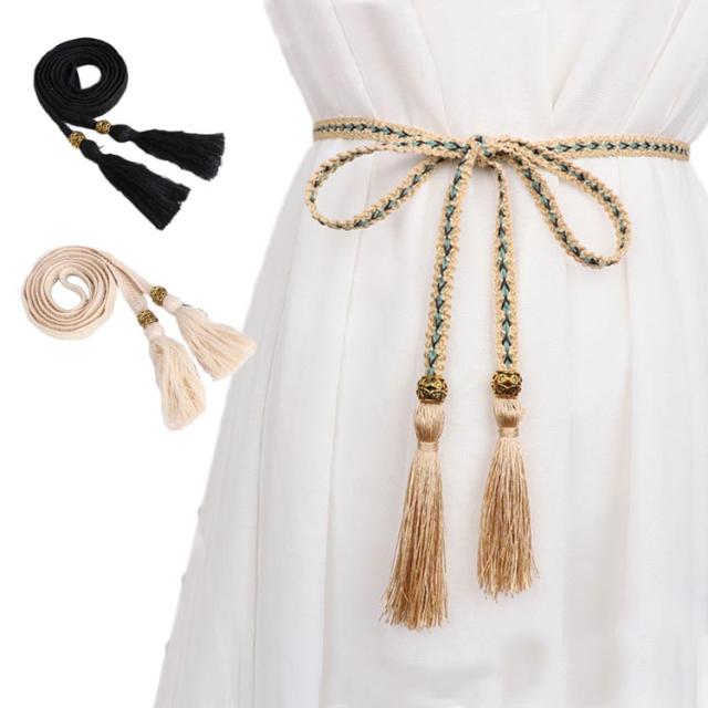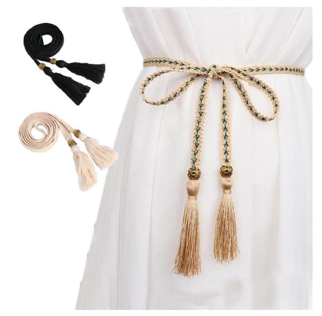 レディース ベルト 大きいサイズ シンプル フリンジベルト ウエストベルト 細ベルト 腰紐 サイズ調整?編みベルト リボン 女性用細ベルト 普段用 送料無料 おしゃれ ワンピースベルト