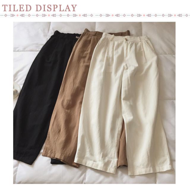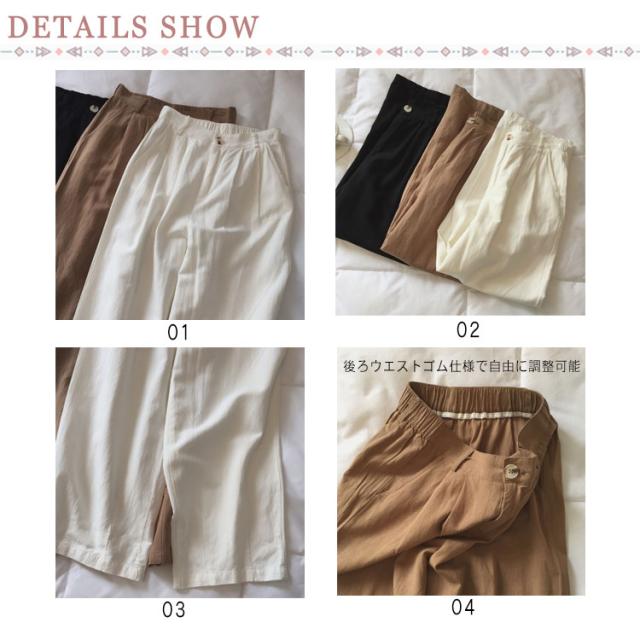 | 毎日履きたくなる。 程よいゆるさのリラックス感のあるワイドパンツ。 後ろウエストがゴム仕立てで楽な着き心地。 | |