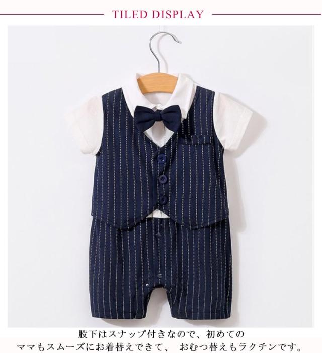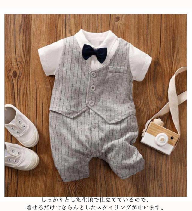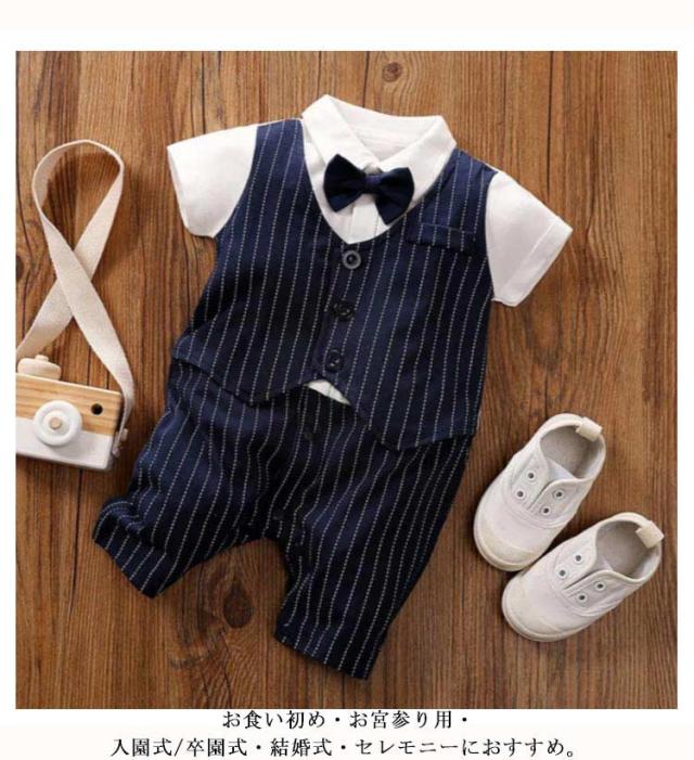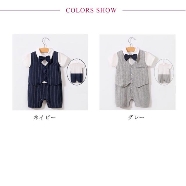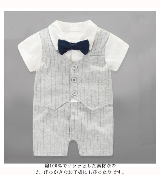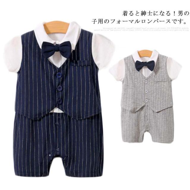 ベビーフォーマル ロンパース 男の子 新生児 洋装 カバーオール 半袖 ベビー服 蝶ネクタイ お喰い初め サロペット 赤ちゃん 夏服 結婚式 セレモニー お宮参り 出産祝い 送料無料