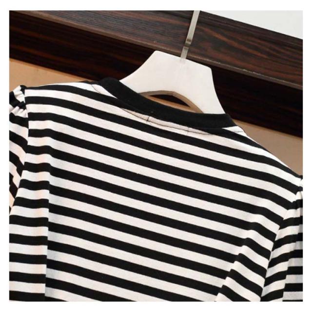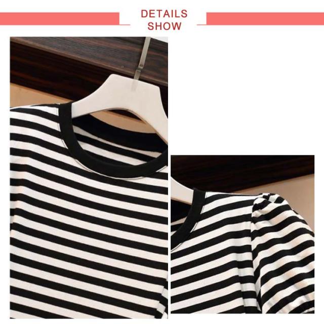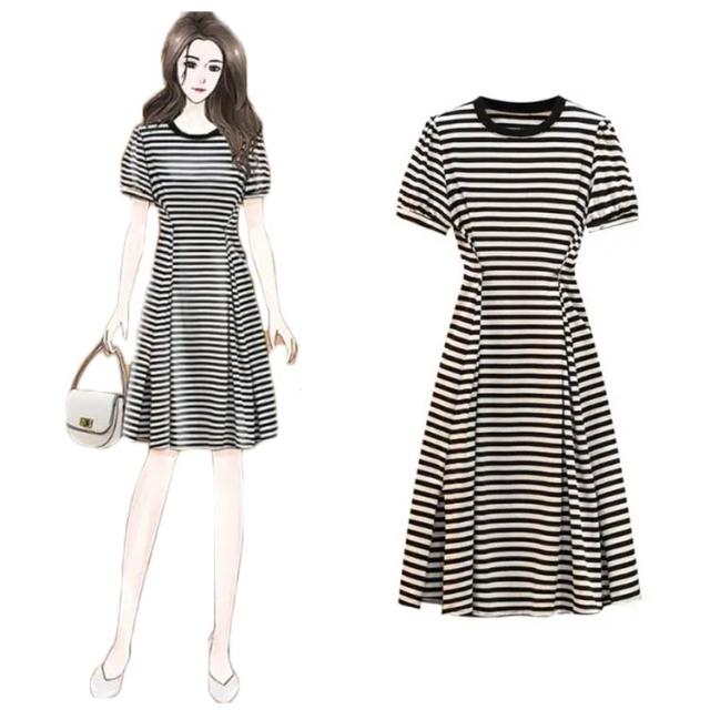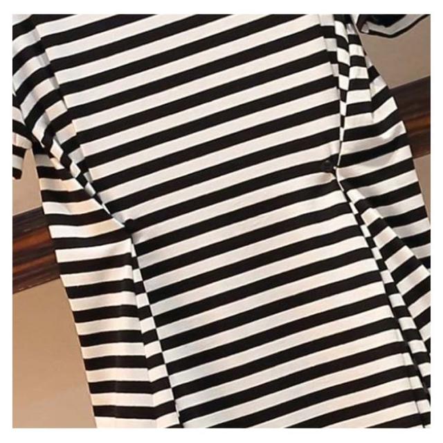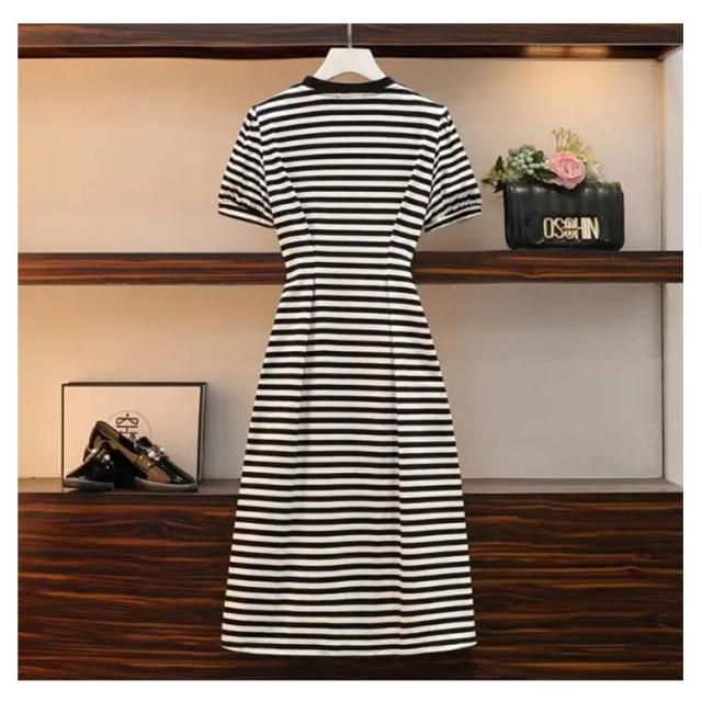 ワンピース 夏 レディース ボーダー柄 プリーツワンピース スリット入り ハイウエスト 半袖 丸襟 コットン ロングワンピース 大きサイズ 着痩せ 送料無料 シンプル カジュアル オシャレ おでかけ