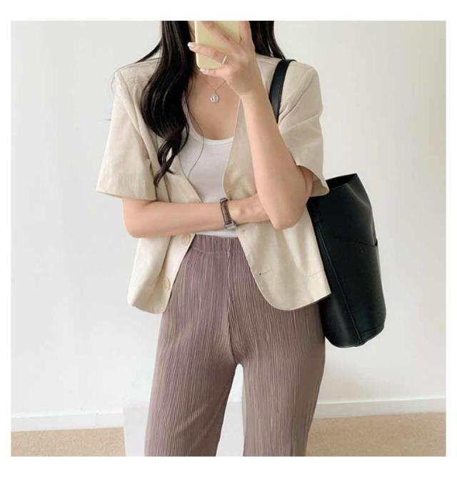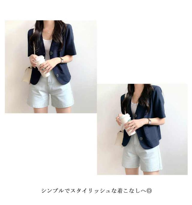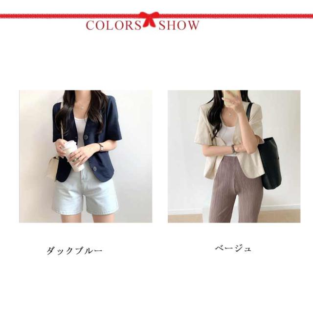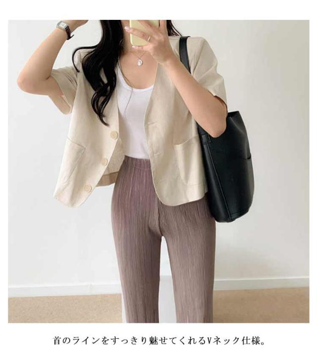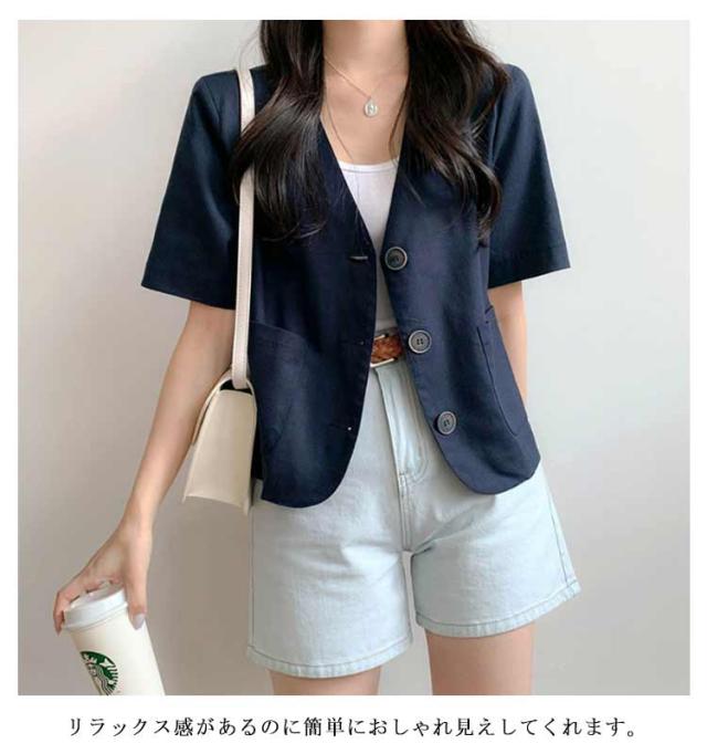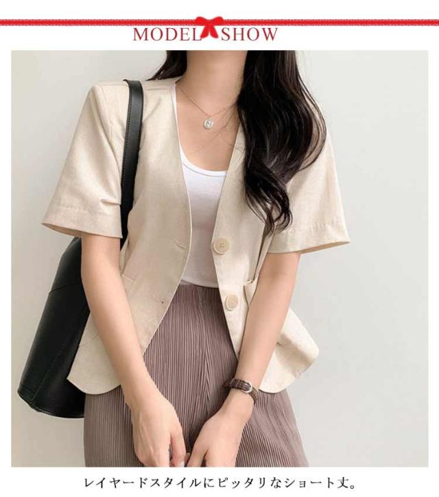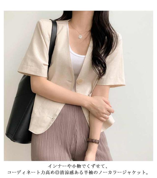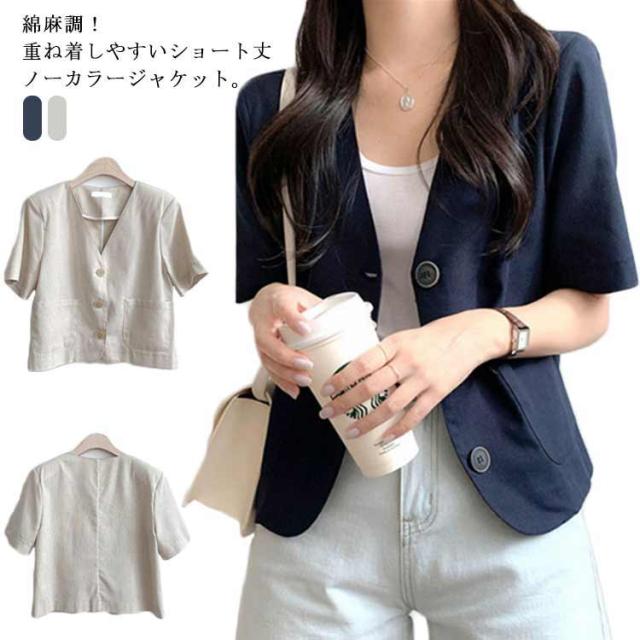 半袖 ノーカラー ジャケット レディース 春夏 テーラードジャケット 綿麻 リネン ショート丈 テーラード ショートジャケット ボレロ ノーカラー サマージャケット 綿 麻
