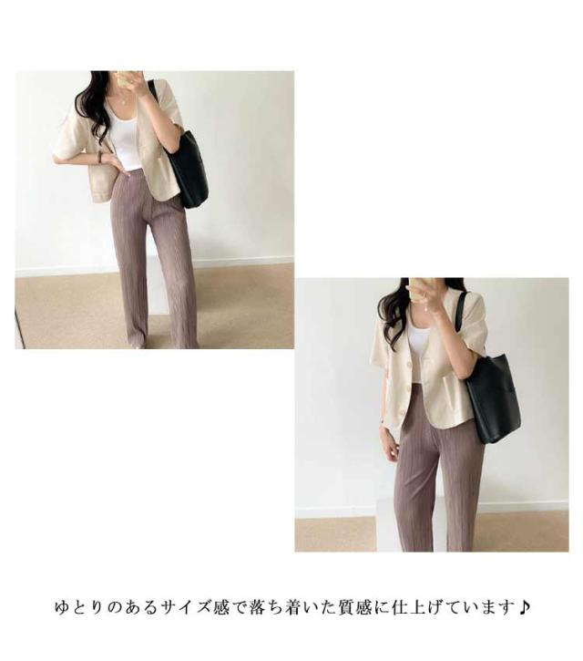 | インナーや小物でくずせて、コーディネート力高め◎清涼感ある半袖のノーカラージャケット。 首のラインをすっきり魅せてくれるVネック仕様。 デイリーからオフィスモードまで、幅広く活躍してくれます。 | |