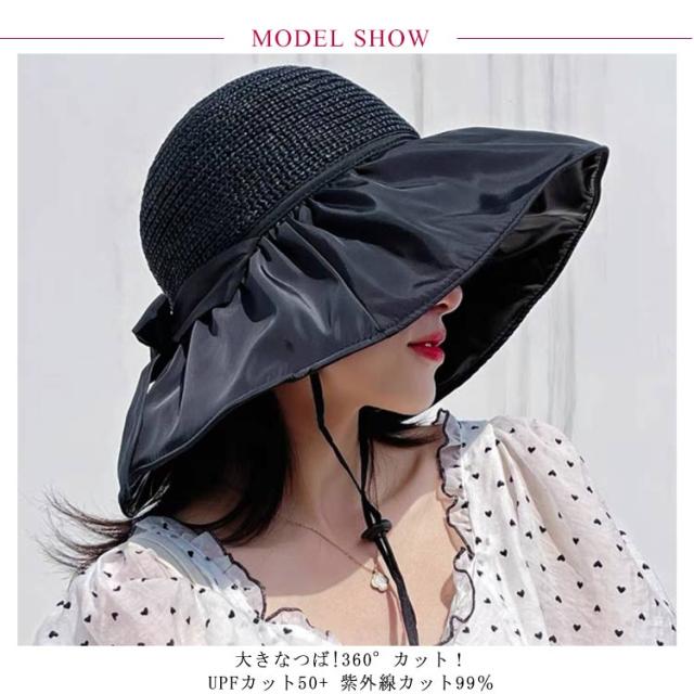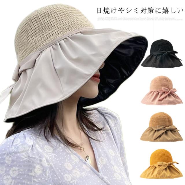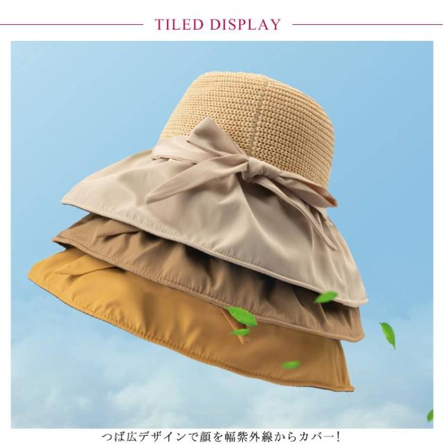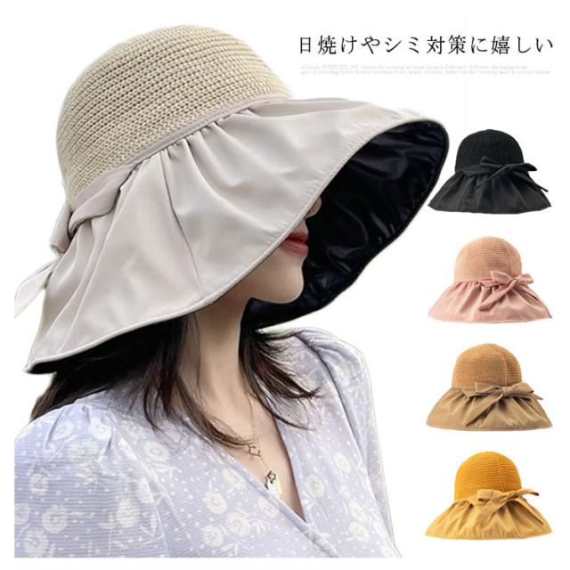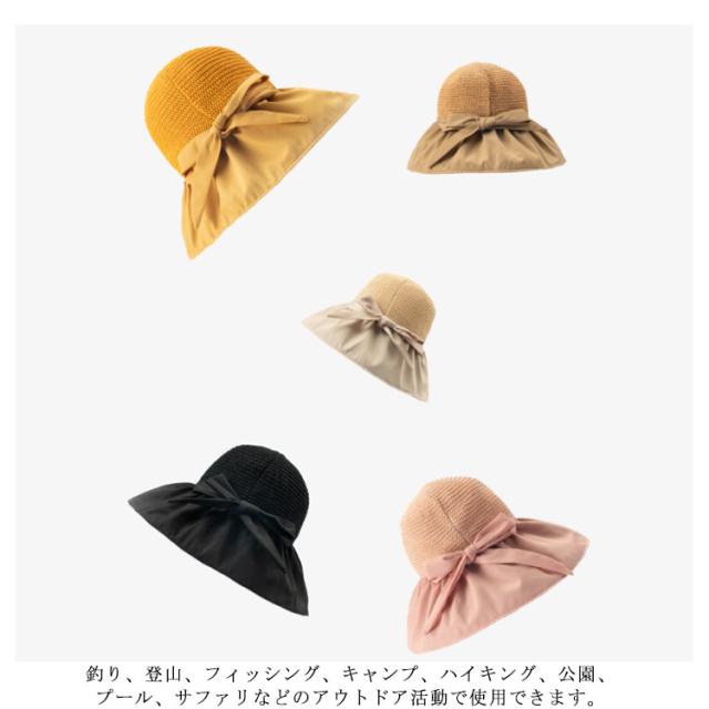 帽子 レディース ハット UVカット 紫外線カット リボン付き 小顔効果 完全遮光 遮蔽【送料無料】アウトドア つば広 綿 折りたたみ 大きいサイズ 飛ばない 日よけ 春 夏 春夏