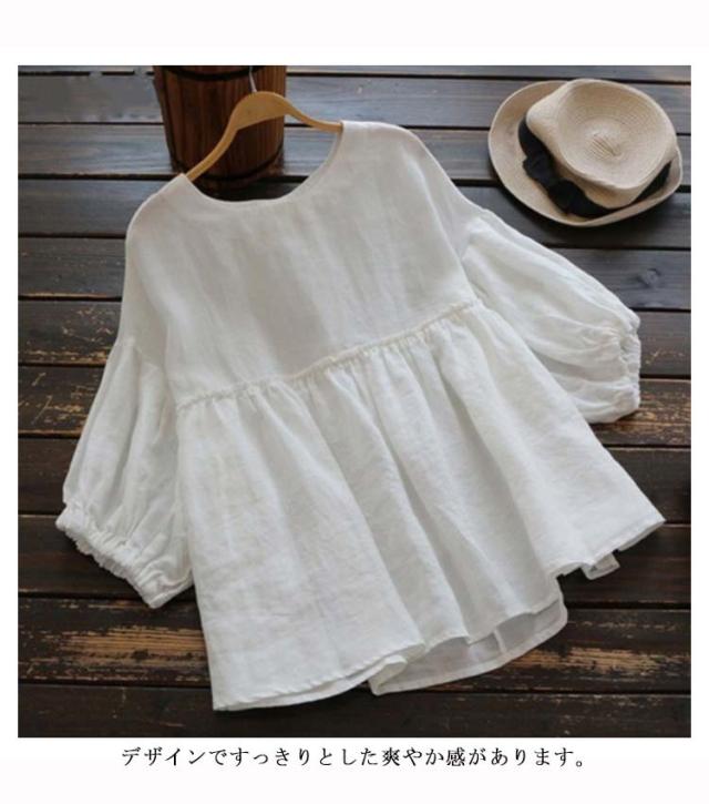 【送料無料】ブラウス シャツ レディース 半袖 vネック トップス パフスリーブ プルオーバー 丸襟 クラシック 無地 大きいサイズ フェミニン 通勤 春 夏 カジュアル