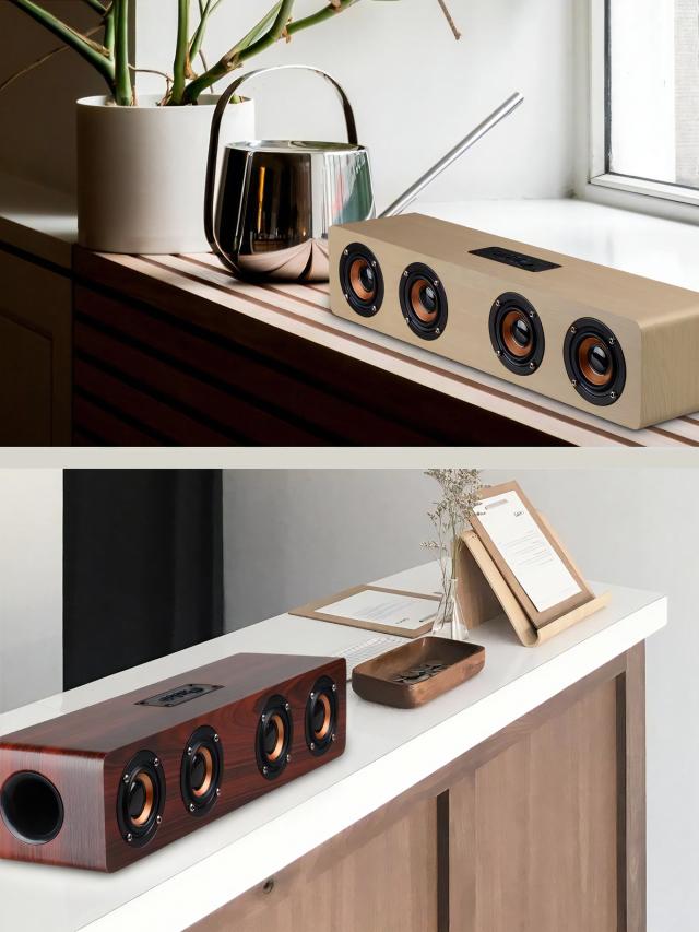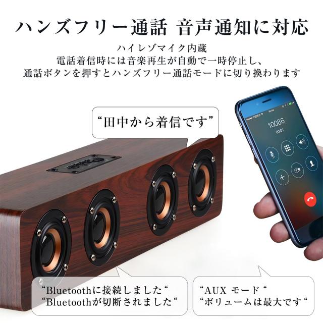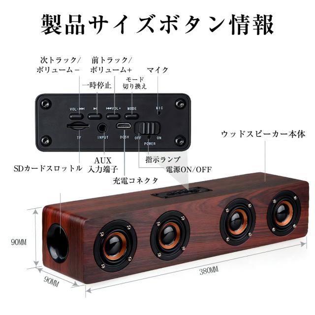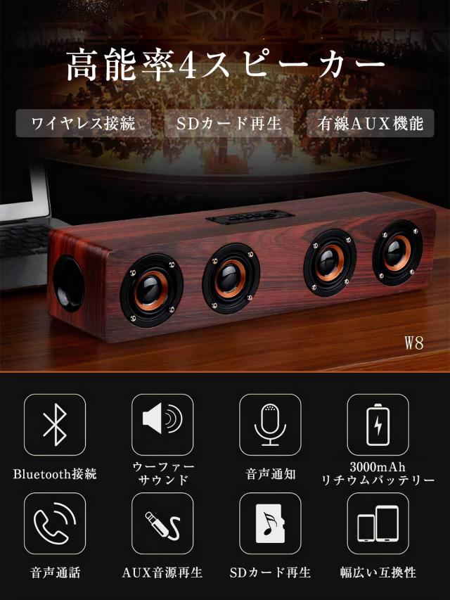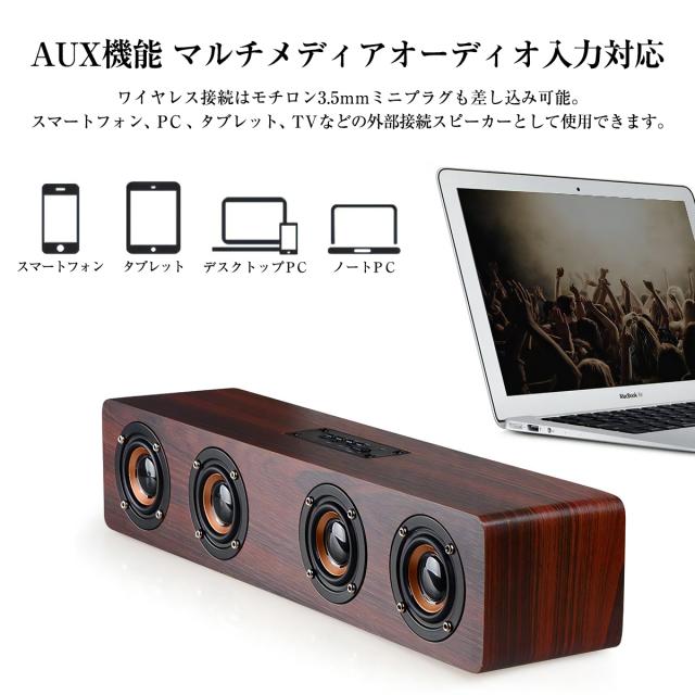 Bluetooth ワイヤレス スピーカー ブルートゥース 木製 ウッド 大音量 12W 高音質 ポータブル おしゃれ 重低音 スマホ かっこいい レトロ 手のひらサイズ USB AUX 3.5mm 【W8】