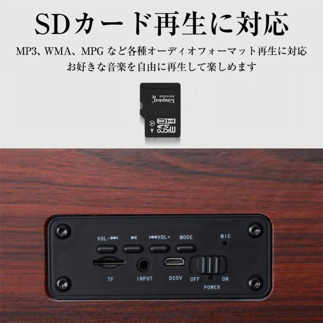 【ワイヤレス接続、SDカード再生、有線AUX機能】
