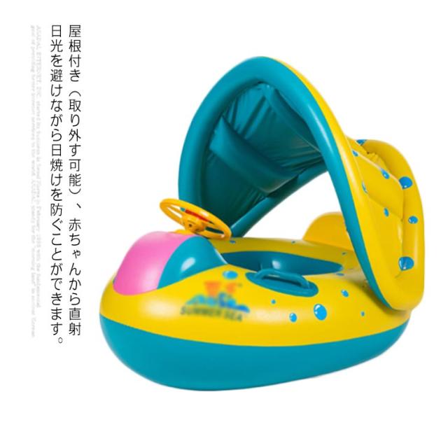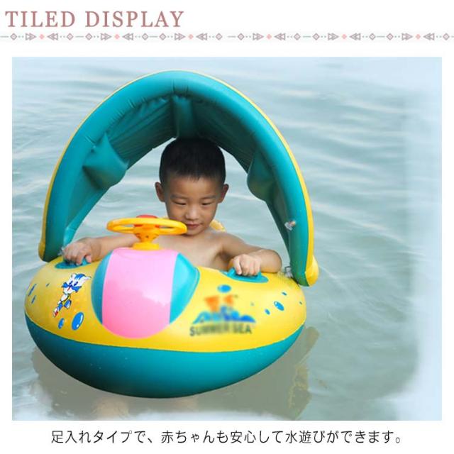 屋根付き 浮き輪 浮輪 浮き具 スイムリング 子供 子ども 子供用 幼児用 ベビー キッズ 男の子 女の子 ビーチ 日焼け止め プール 海 フロート ボート 足入れタイプ 取っ手付 ハンドル付き 足穴 足抜き 座付き 水遊び 夏休み