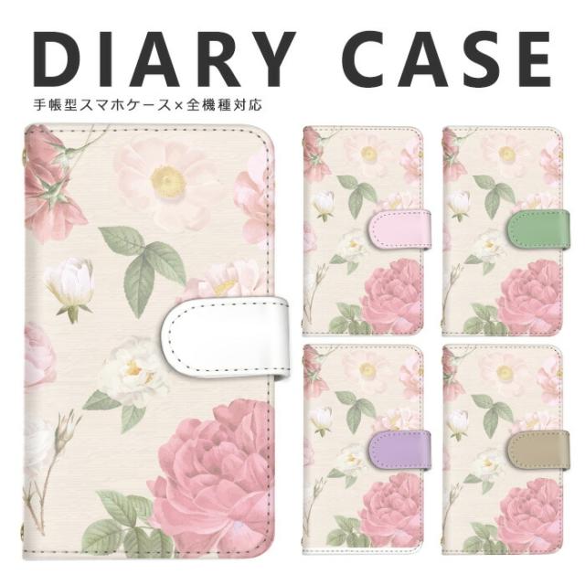 ケース スマホケース 全機種対応 手帳型 Disney Mobile isai BASIO シンプルスマホ Libero らくらくスマートフォン キッズケータイ らくらくフォン iPhone Xperia Galaxy AQUOS arrows DIGNO Rakuten Mini 花柄 シンプル 花 カワイイ 淡い バラ 線画
