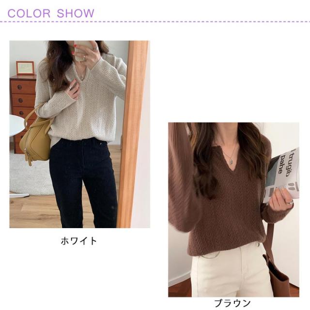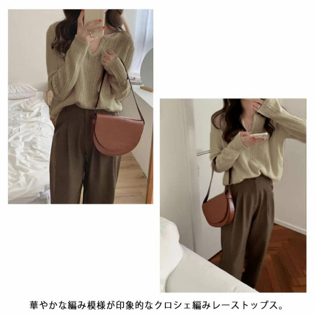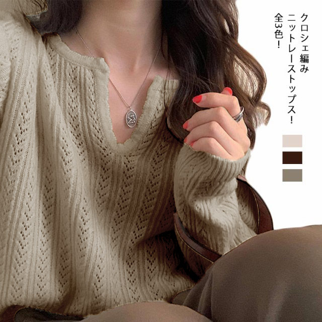 ニット レディース トップス 透かし編み 長袖 vネックニット かぎ針編み【送料無料】 セーター 可愛い 長袖ニット 上着 春 秋 大人 上品 きれいめ 韓国 ファッション ホワイト グリーン