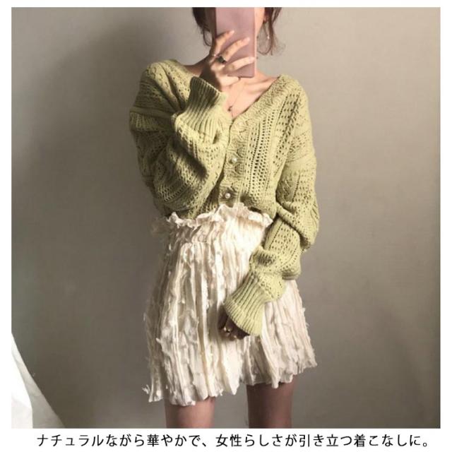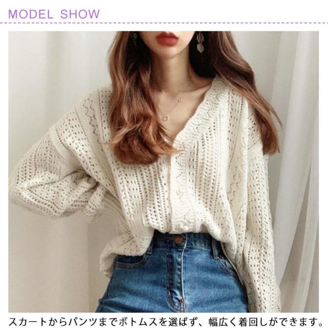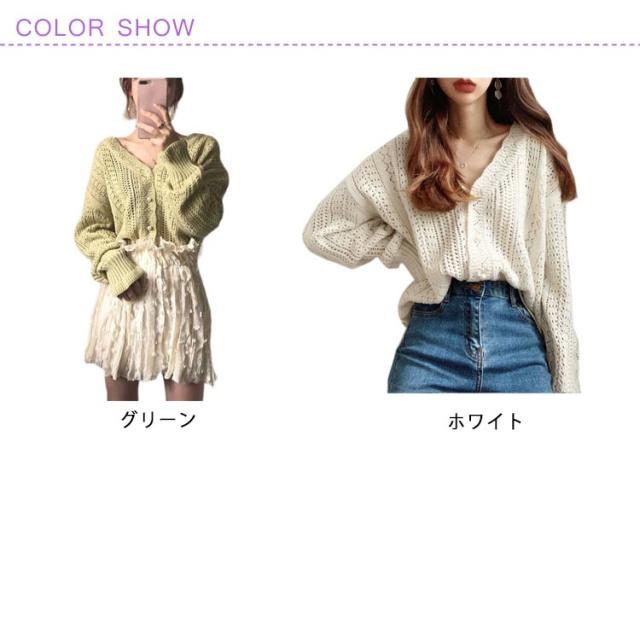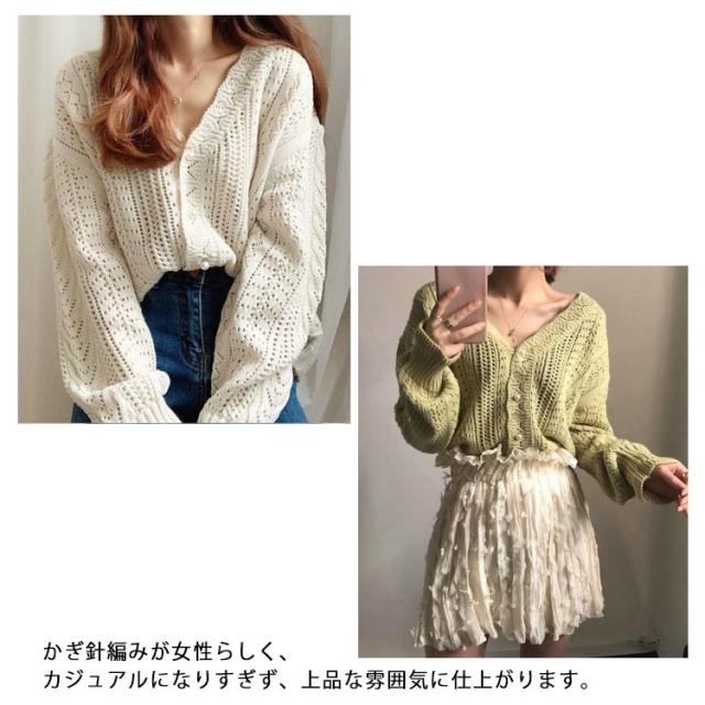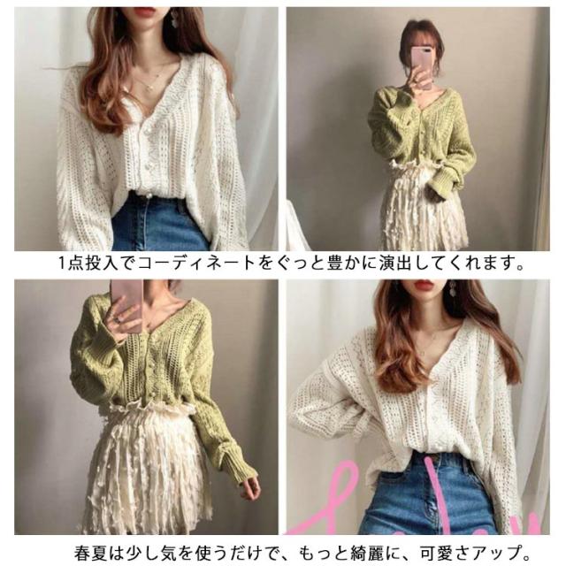 ニットカーディガン レディース トップス 透かし レース編み【送料無料】vネックニット 長袖 かぎ針編み 可愛い アウター 上着 ニットカーデレトロ 春 秋 大人 上品