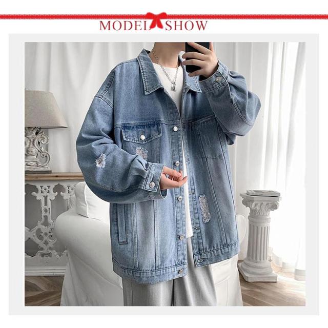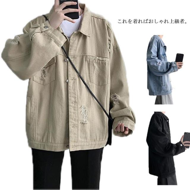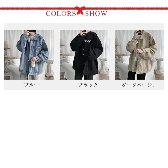 デニムジャケット メンズ ビッグシルエット Gジャン ジージャン ブラックデニム 韓国 ファッション ゆったり 長袖 ロングスリーブ 男性 カジュアル 春 秋 冬 個性 大きいサイズ 紳士 贈り物 プレゼント