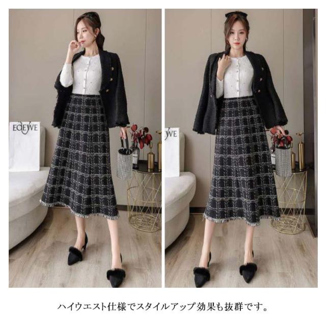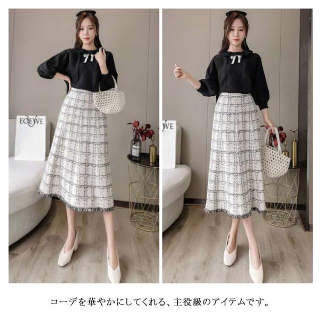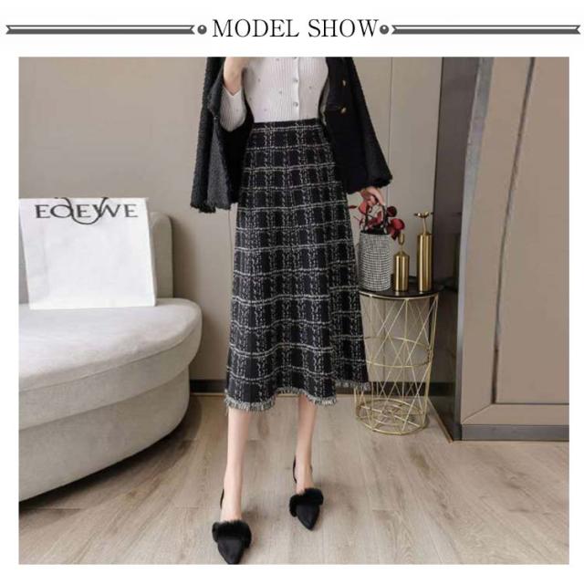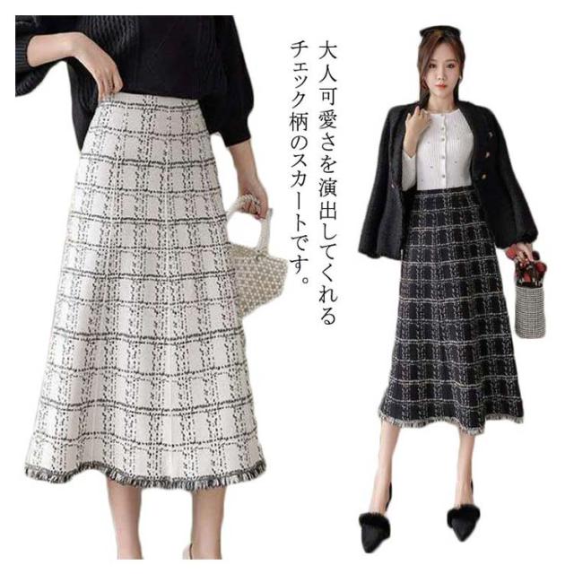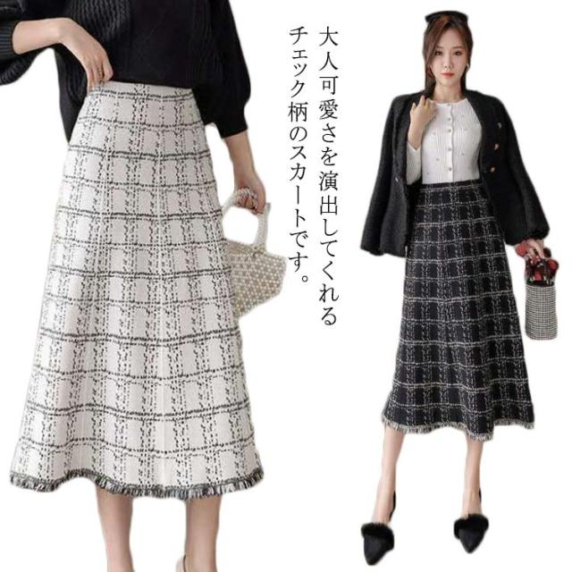 送料無料 スカート レディース チェック フレアスカート チェックスカート ロングスカート ハイウエスト エレガント aライン カジュアル ボトムス 着痩せ シンプル 秋 冬 秋冬