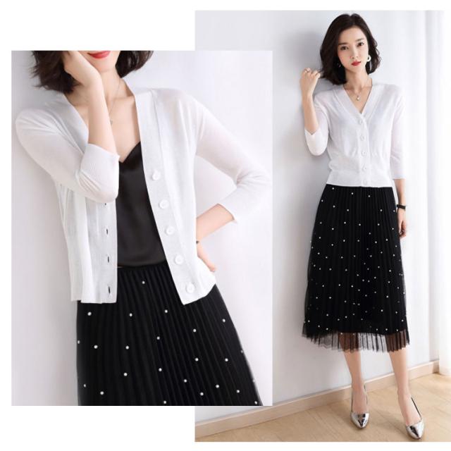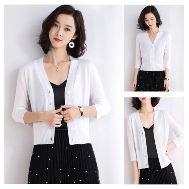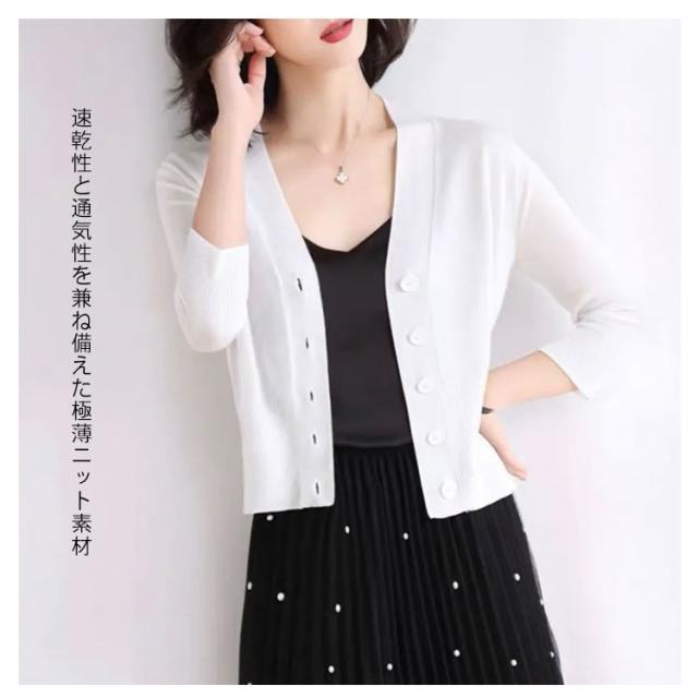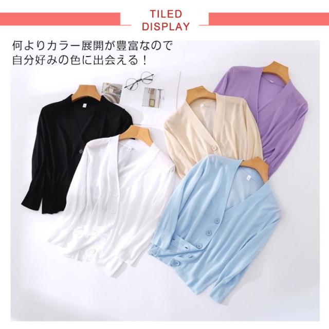 カーディガン 薄手 夏 レディース UVケア 7分袖 送料無料 透かし きれいめ トップス 半袖 学生 オフィス サマーカーディガン 軽 UVケア超薄手Vネック