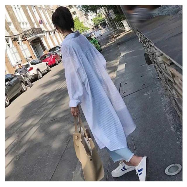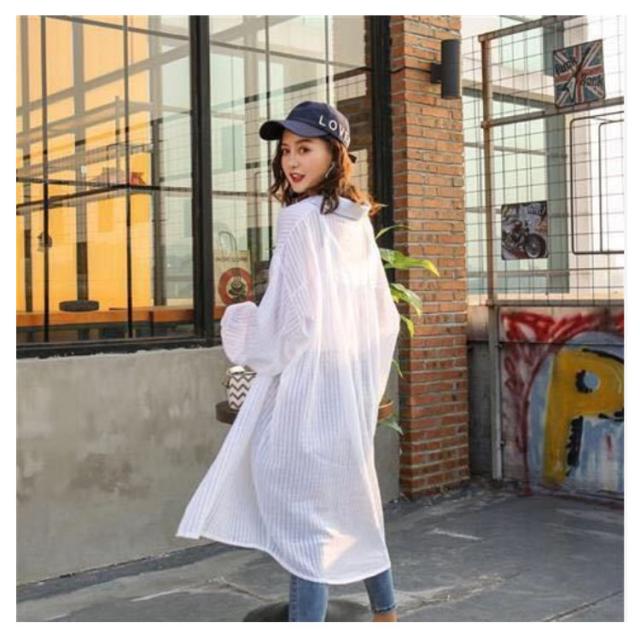 シャツ 透け感 長袖 シアーシャツ レディー ロングシャツ 送料無料 リネン 綿麻 シャツワンピ チュニックシャツ ストライプ ロング丈 シャツワンピース 羽織 体型カバー 涼しげ uvカット 紫外線対策