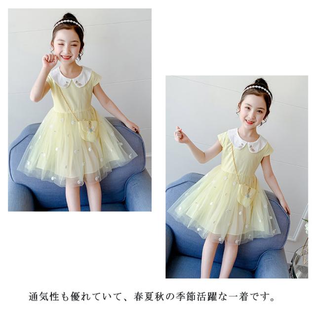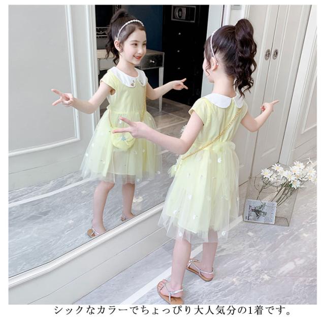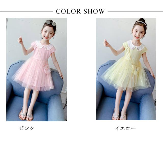 子供ワンピース チュールワンピース 半袖 女の子 子供服 キッズドレス 半袖 キッズ服 可愛い 子供ドレス ロングスカート チュールスカート カジュアル 夏服 普段着